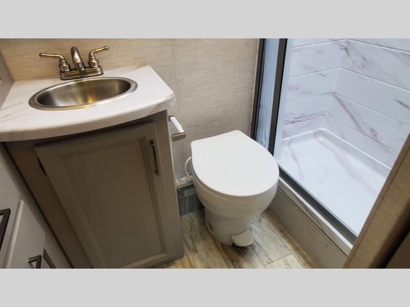 Travel comfortably in this Chateau Sprinter Class C motorhome with a thoughtful layout including a Murphy bed for comfort at night and added floor space during the day. When you close up the Murphy bed you will have a sofa in its place. A 71" Dream Dinette allows for added seating during mealtime and for game playing, and it also can transform into sleeping space at night. Plus, you will have a 52" x 87" cab-over bunk that sleeps two adults or children as well. All will enjoy the full rear bath with a space saving sliding door for privacy. Inside, there is a 24" x 36" shower plus a nice size closet for your clothing. A skylight over the shower adds additional headroom and natural lighting. A full kitchen including a three burner cook-top and microwave oven, plus ample counter space for food prep and a single bowl sink make it easy to provide meals while you travel.