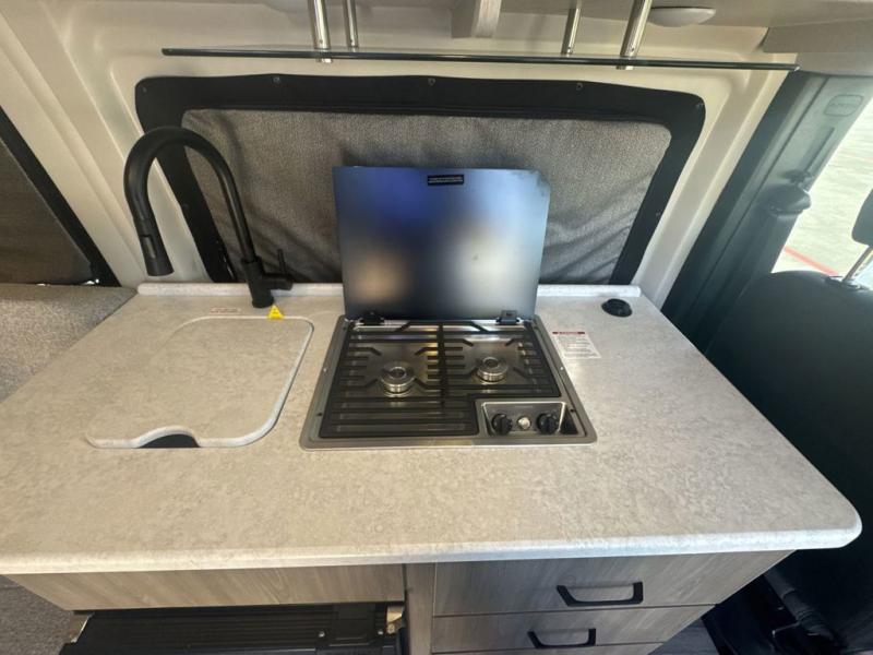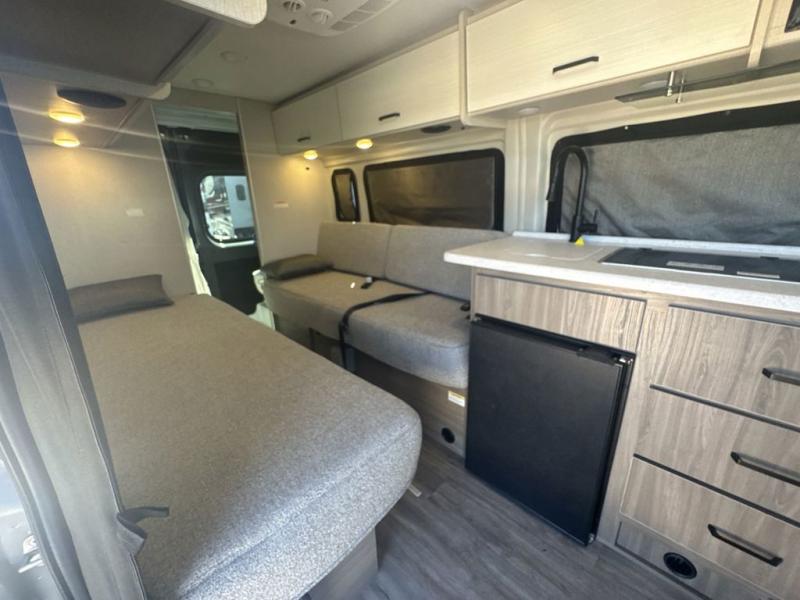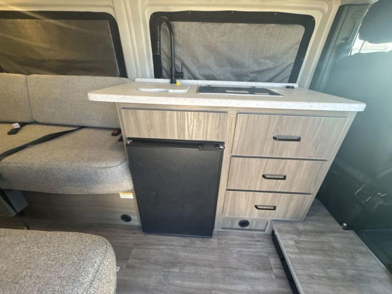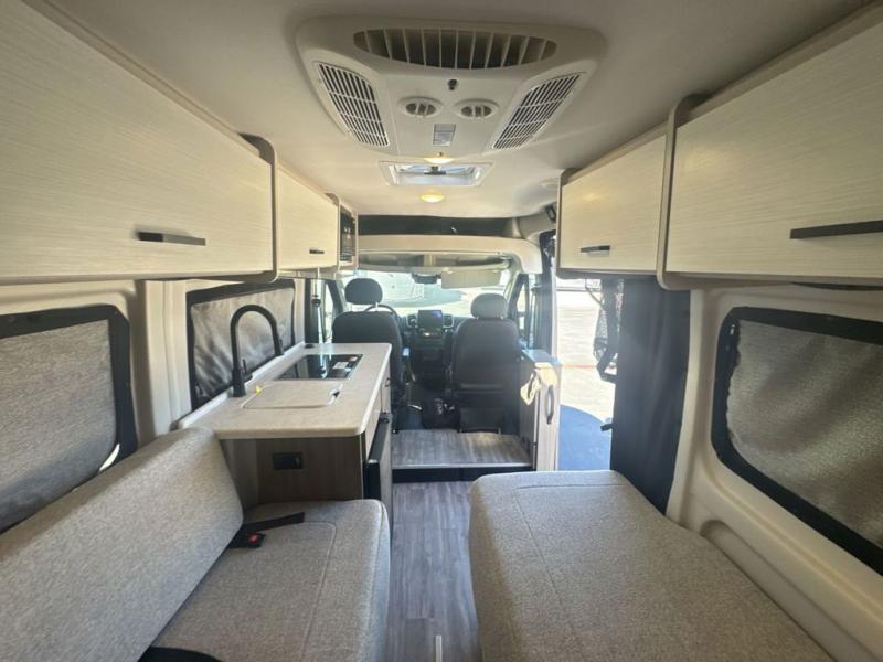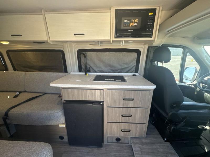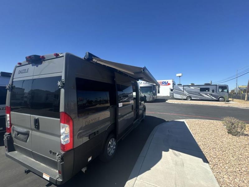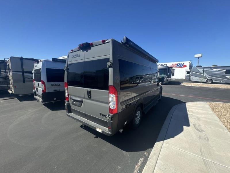 Plenty of amenities are packed into the Thor Motor Coach Dazzle Class B motorhome. Built on the RAM ProMaster® 3500XT gas window van chassis, these come with a 3,500 lb. trailer hitch, an Onan® RV QG 2800 gas generator, and a Truma® Combi Eco LP furnace and water heating system. You'll have a convenient Rapid Camp+® Multiplex wiring control system, which allows you to operate features like lights, generator, slides, awnings, HVAC, and more from an easy to use small handheld remote. Inside, you'll enjoy residential vinyl flooring, a soft-touch vinyl ceiling, and pressed countertops with an undermount sink and sink covers to name a few comforts.
