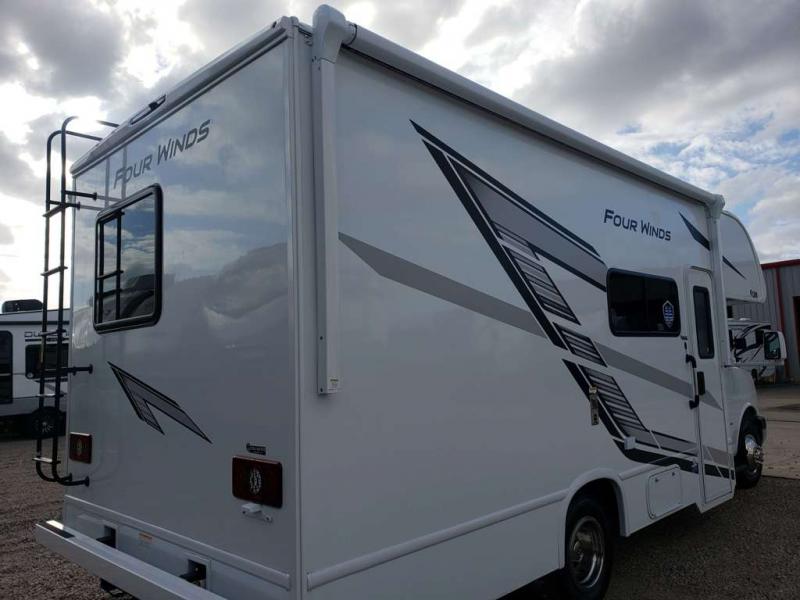 With any Four Winds Class C gas motorhome, you can travel in a trustworthy Ford E-Series chassis with 325HP, or a Chevrolet chassis with 401HP if you choose that option which is available on several models. Each is built with welded sidewall cage construction and a welded tubular aluminum roof, a one-piece fiberglass cap, and includes a slick fiberglass exterior with graphics package for style and years of enjoyment on the open road. Inside, you will enjoy the well-equipped kitchen, the spacious bathroom, the sleeping accommodations and the Winegard ConnecT 2.0 WiFi/4G/TV antenna that allows you to stay connected. With several floorplans to choose from and options to add, you will surely find one that fits your family's needs or your friend's approval. Choose today!