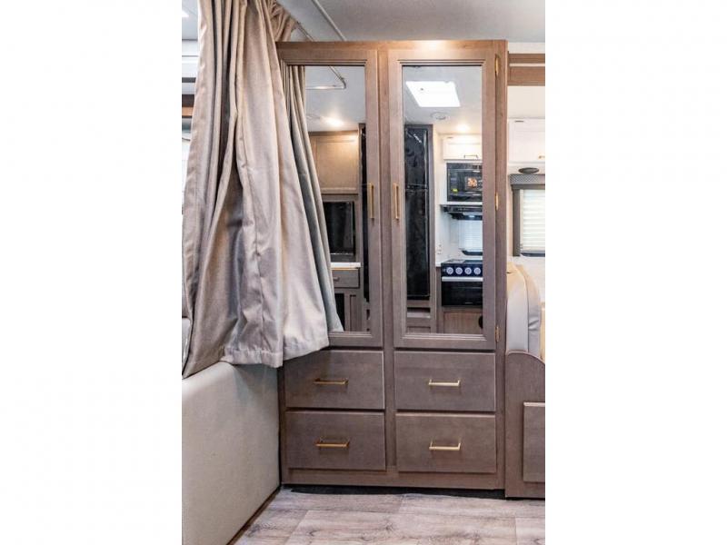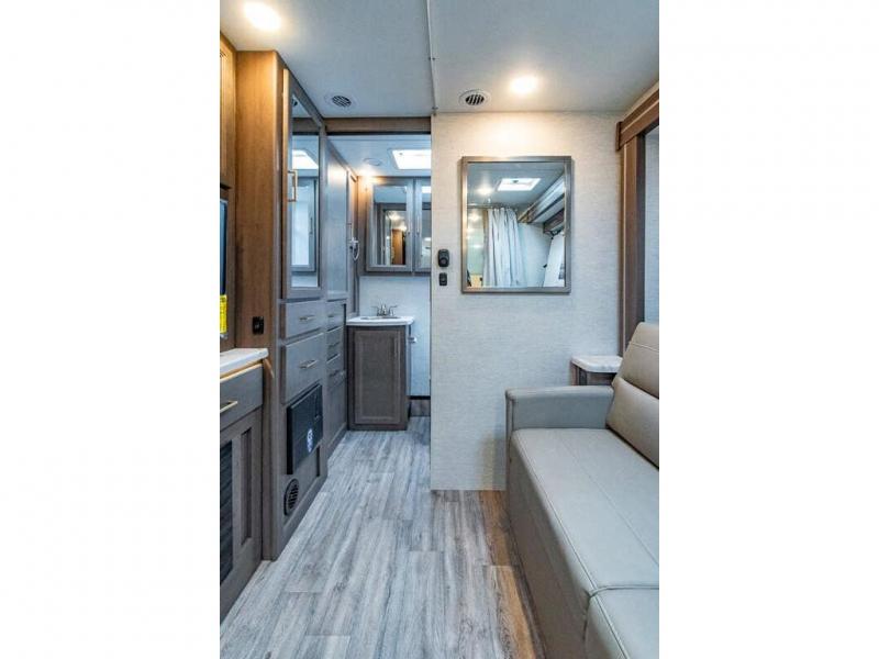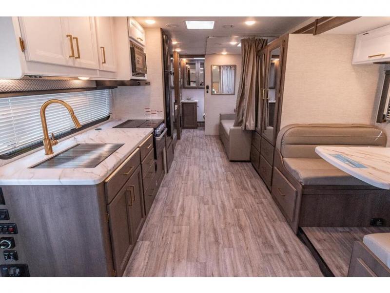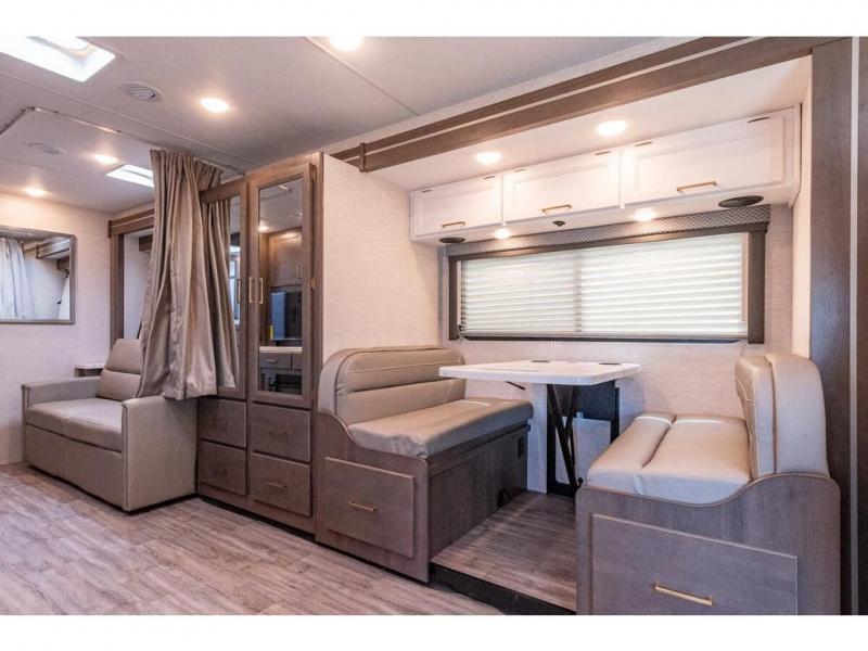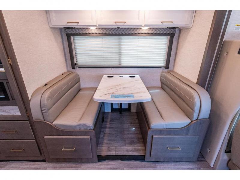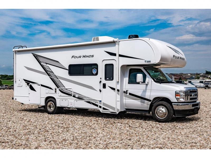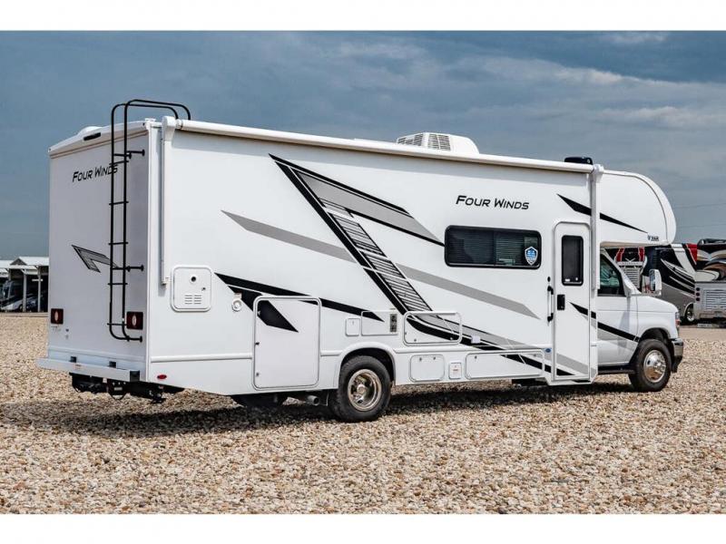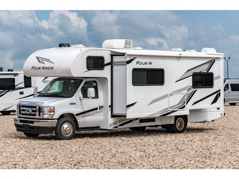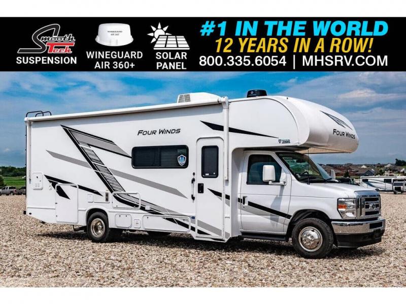 With any Four Winds Class C gas motorhome, you can travel in a trustworthy Ford E-Series chassis with 325HP, or a Chevrolet chassis with 401HP if you choose that option which is available on several models. Each is built with welded sidewall cage construction and a welded tubular aluminum roof, a one-piece fiberglass cap, and includes a slick fiberglass exterior with graphics package for style and years of enjoyment on the open road. Inside, you will enjoy the well-equipped kitchen, the spacious bathroom, the sleeping accommodations and the Winegard ConnecT 2.0 WiFi/4G/TV antenna that allows you to stay connected. With several floorplans to choose from and options to add, you will surely find one that fits your family's needs or your friend's approval. Choose today!