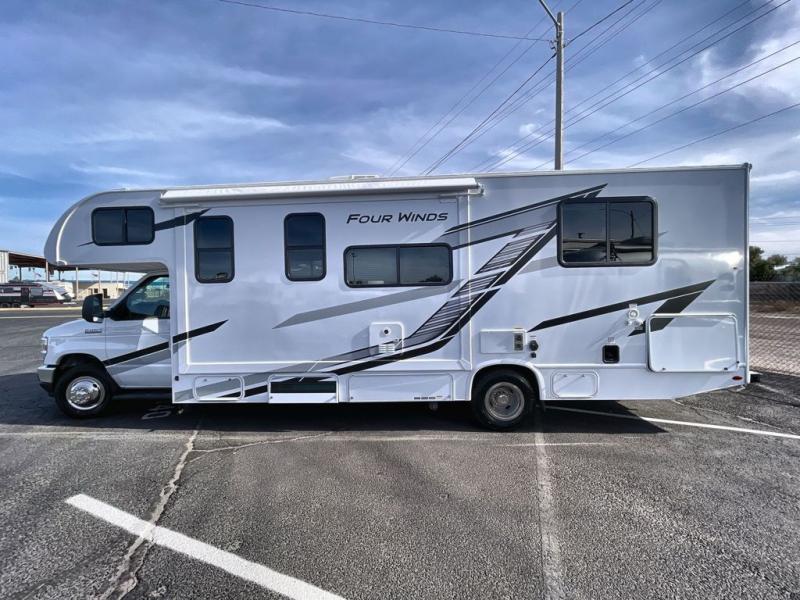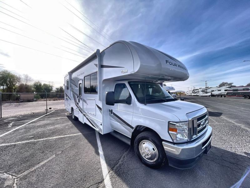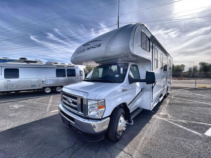 With any Four Winds Class C gas motorhome, you can travel in a trustworthy Ford E-Series chassis with 325HP. Each is built with welded sidewall cage construction and a welded tubular aluminum roof, a one-piece fiberglass cap, and includes a slick fiberglass exterior with graphics package for style and years of enjoyment on the open road. Inside, you will enjoy the well-equipped kitchen, the spacious bathroom, the sleeping accommodations and the Winegard ConnecT 2.0 WiFi/4G/TV antenna that allows you to stay connected. With several floorplans to choose from and options to add, you will surely find one that fits your family's needs or your friend's approval. Choose today!
