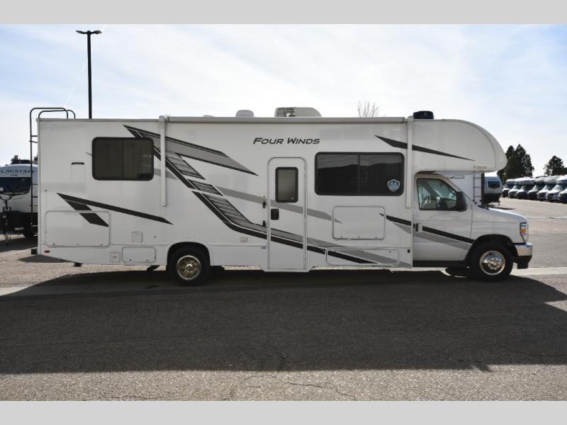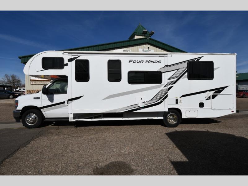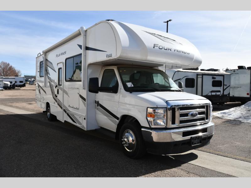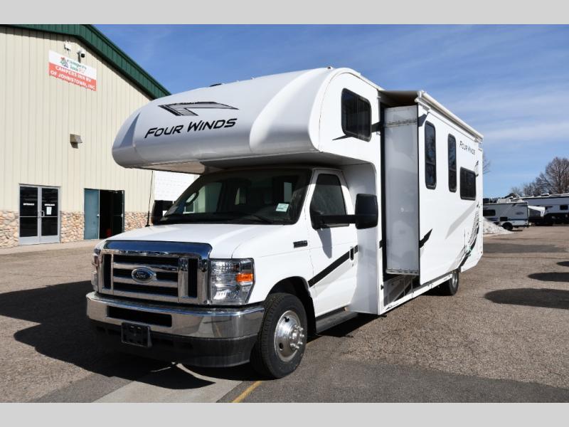 With any Four Winds Class C gas motorhome, you can travel in a trustworthy Ford E-Series chassis with 325HP. Each is built with welded sidewall cage construction and a welded tubular aluminum roof, a one-piece fiberglass cap, and includes a slick fiberglass exterior with graphics package for style and years of enjoyment on the open road. Inside, you will enjoy the well-equipped kitchen, the spacious bathroom, the sleeping accommodations and the Winegard ConnecT 2.0 WiFi/4G/TV antenna that allows you to stay connected. With several floorplans to choose from and options to add, you will surely find one that fits your family's needs or your friend's approval. Choose today!