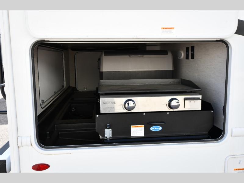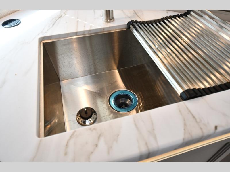 Perfect for a couple or a growing family, this coach will allow you to enjoy inside comforts and outdoor scenery where ever you drive and park! You will have great views out of the many windows when you are indoors, and the power awning offers an outdoor living area protected by the elements when you want some fresh air. The cook will love the large single bowl stainless steel sink with a single handle faucet with a pull-down sprayer when cleaning fruits and veggies, the gas cooktop and microwave when making meals, as well as the 12V refrigerator to hold all the cold items. The slide out creates even more floor space, the furniture offers a place to dine and visit as well as sleep, and the private bedroom with a full bathroom just steps away will complete the deal! You will also appreciate the optional exterior kitchen and optional exterior TV for more choices!