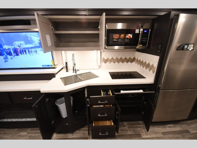This coach is designed for extended touring, seasonal stays, and luxury RV resort living.