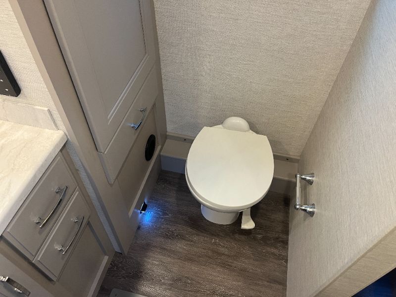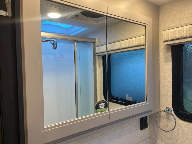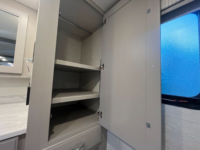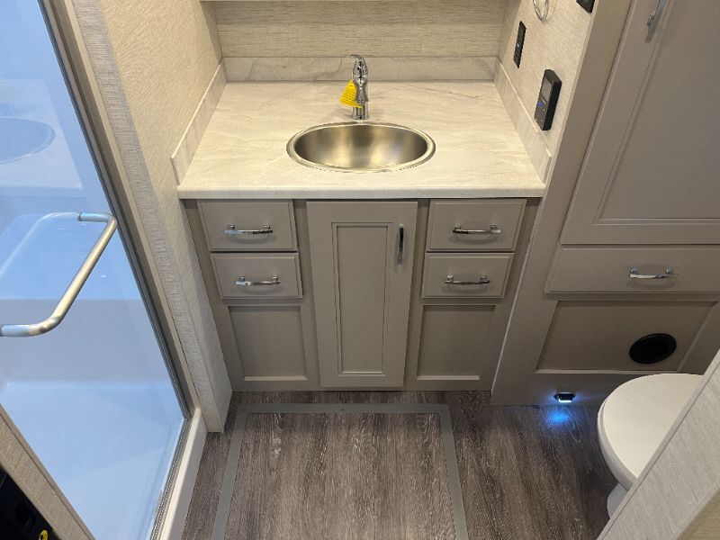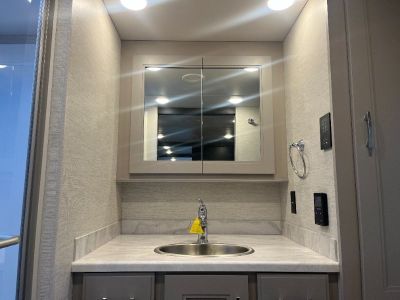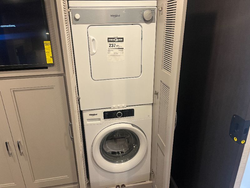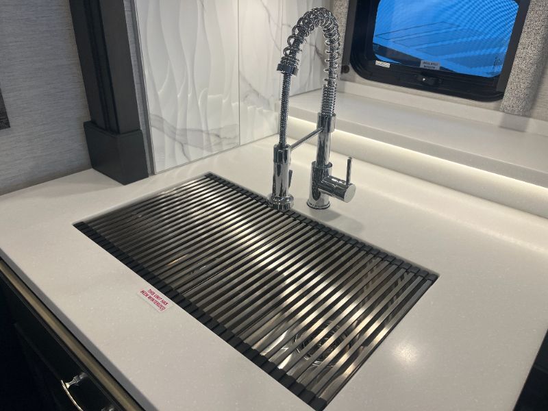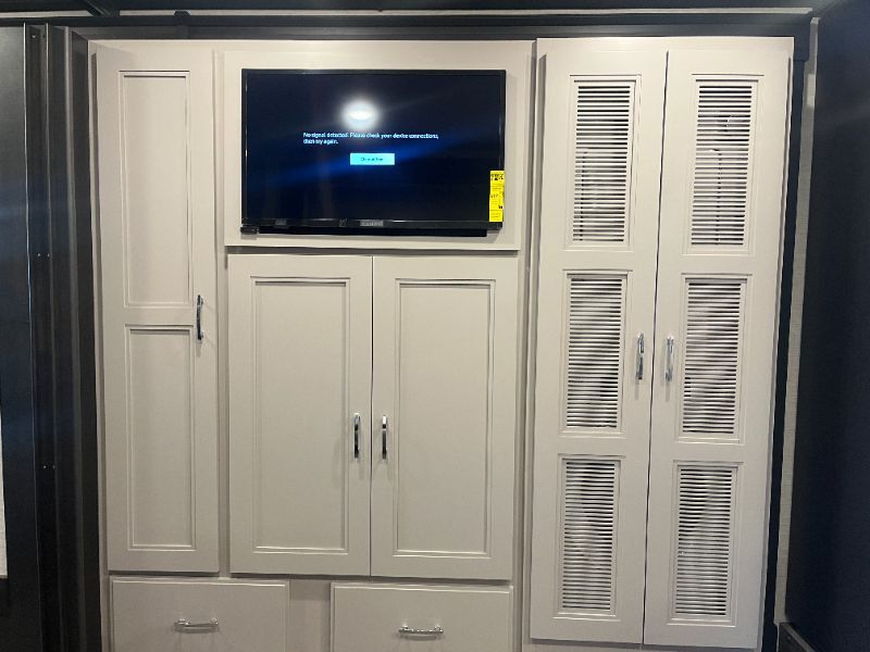 This coach can fit your whole crew thanks to the added bunk beds within the full-wall slide! There is also a drop-down overhead bunk, a Tilt-A-View inclining queen bed, a 72" Dream Dinette, and an 80" sofa for even more sleeping space! A full rear bath on board will let you clean up each morning, and there is a second full bath across from the bunks for your guests; how convenient! Head to the kitchen to prepare breakfast on the two burner electric induction cooktop or in the stainless steel over-the-range convection microwave, and there is a 19 cu. ft. side-by-side residential refrigerator where the milk and eggs can go back in. After a day outdoors relaxing under the 20' power awning and watching the game on the exterior 40" LED TV, you can head indoors to play a game at the Dream Dinette or get cozy with a book on the sofa!
