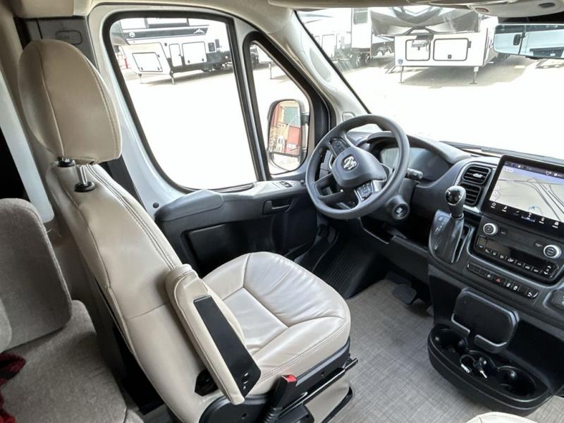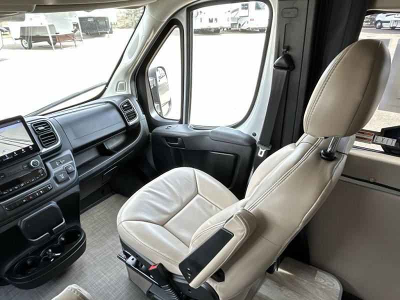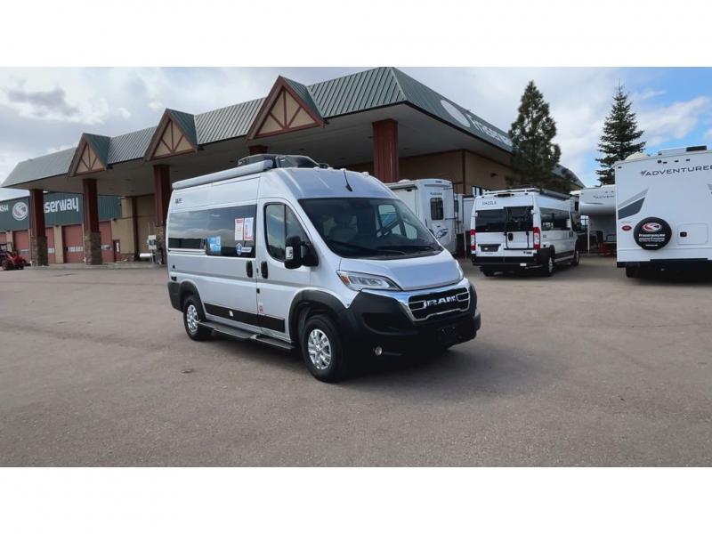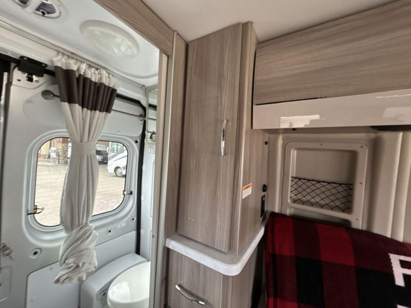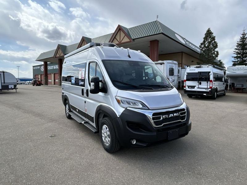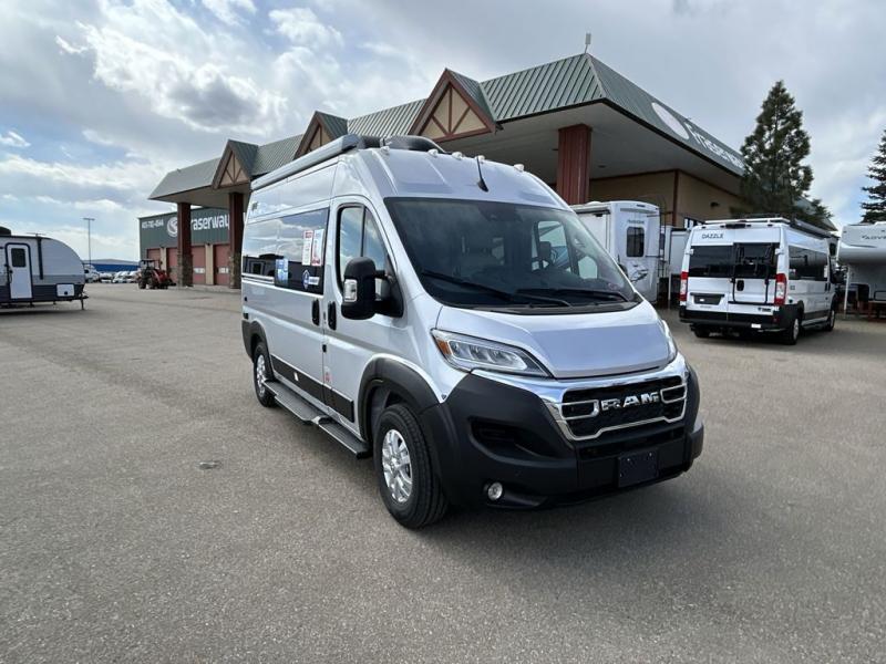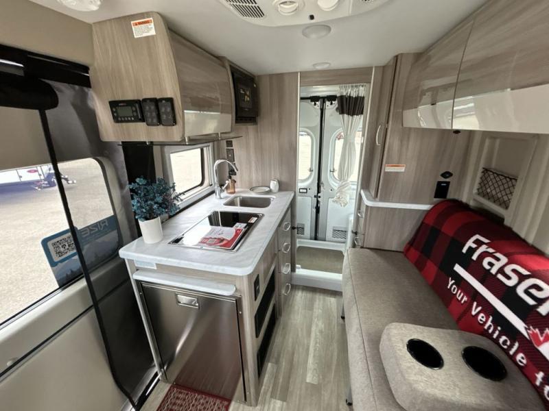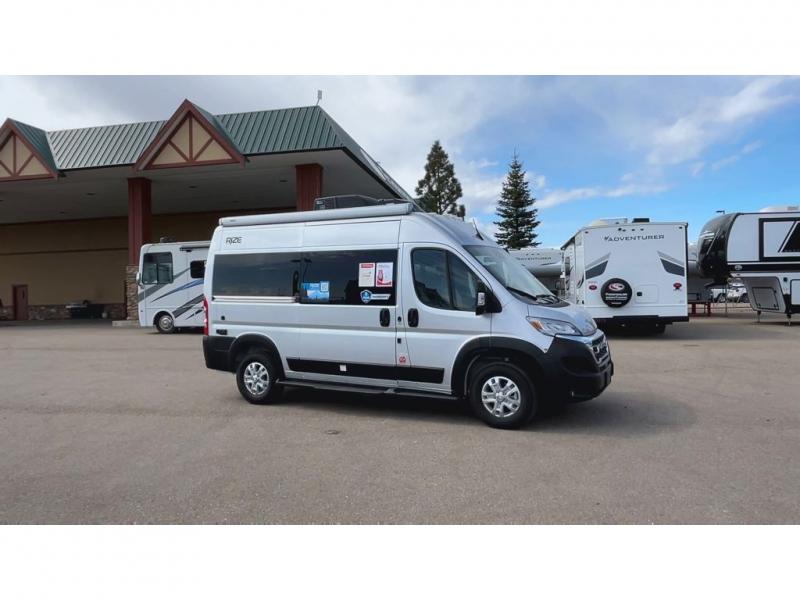 The Rize Class B gas motorhome by Thor Motor Coach allows you to experience the camping lifestyle in a compact RV packed with convenient features. There is a 3.6L Pentastar V6 engine and 276 HP to power your excursions, and the outdoor enthusiast will love the 200W solar panel and solar charge controller. Each model includes residential vinyl flooring, TechnoForm Euro-style upper cabinet doors, and premium window privacy shades. You'll find pressed countertops in the kitchen and a glass protective cover and task lighting above the cooktop to easily cook meals each day. The keyless entry system adds to the convenience found throughout these models, plus there is an exterior LP connection if you want to hook up your own grill and a rear water sprayer to wash off your hiking boots.