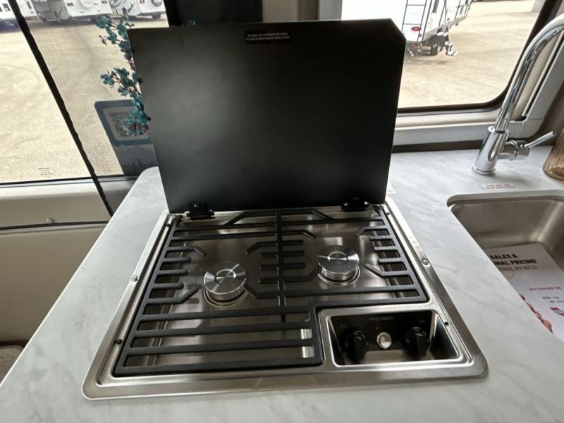 This coach is the perfect home on wheels for all your adventures. You will have everything you need, including a wet bath with a cassette toilet and pocket doors to save space. The Winegard Connect 2.0 4G/Wi-Fi/Digital TV antenna allows you to stay connected to the outside world. Once you have prepared breakfast on the two-burner gas cooktop, you can dine on the sofa with a removable table. This area can then be your sleeping space at night since the sofa converts into a 72" x 47" pull-out bed. Whether you're enjoying the fresh air let in by the large opening side windows, or you're sipping on a cold drink under the electric awning, you will love everything about this coach!