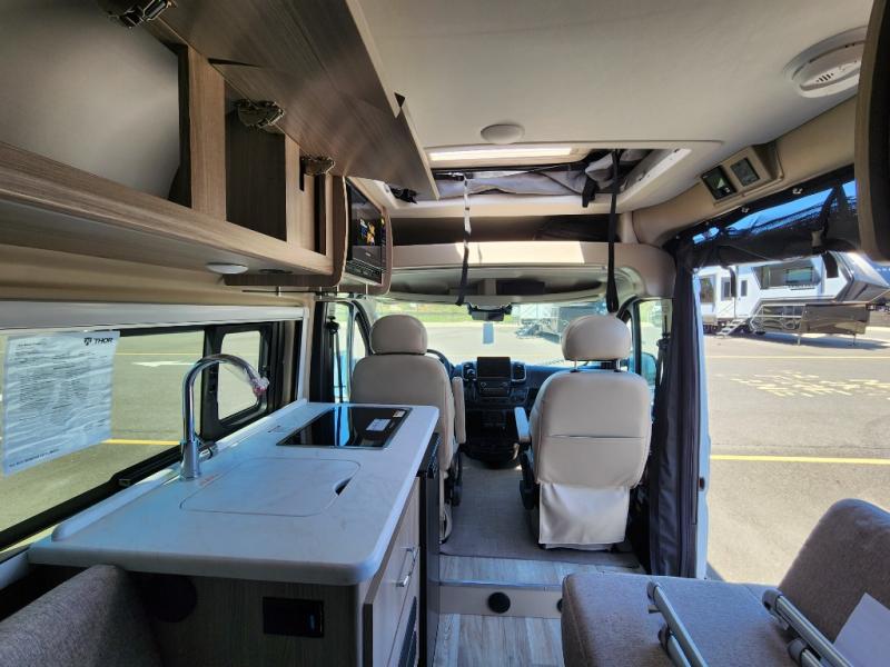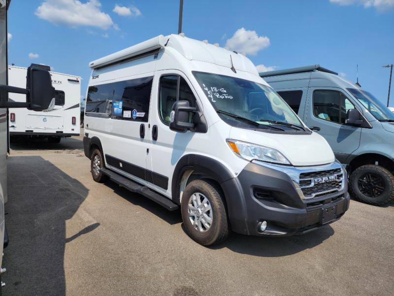 Experience comfort and convenience in the Thor Motor Coach Scope 18G Class B motorhome! The seating area features an expanding sleeper sofa that converts into a spacious 44" x 70" bed. For additional guests, consider adding the Sky Bunk™ with a retractable rooftop. The rear wet bath ensures you have everything you need on the road. Enjoy a delightful driving experience with swivel captain's chairs, a touchscreen dash radio with Apple CarPlay™ & Android Auto™, keyless entry, and a telescoping steering wheel with audio buttons. The kitchen is equipped with a two-burner gas cooktop, microwave oven, and a single-door 12V electric refrigerator. The stainless steel double bowl sink with a cover and single handle faucet makes clean-up easy!