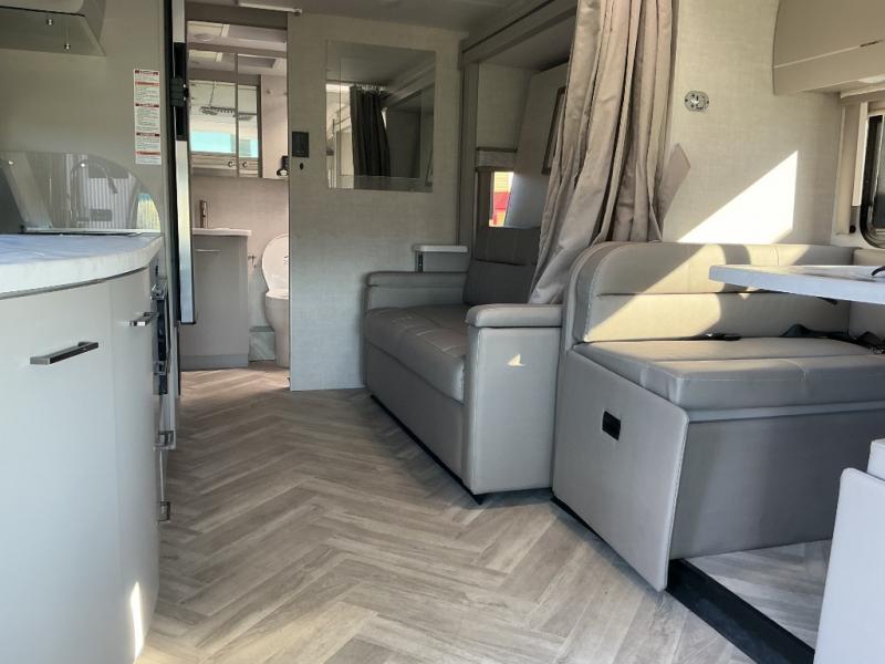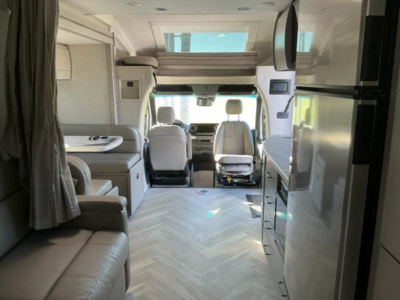 You will be well on your way to unforgettable journeys when you purchase the Thor Motor Coach Tiburon Sprinter Class C diesel motorhome and add it to your line-up! What makes the Tiburon Sprinter so special are the elegant and stunning interiors combined with the eye-catching exterior and powerful Mercedes-Benz Sprinter chassis with a 2.0L l-4 engine and 211HP. You will stay safe as you travel because the Mercedes-Benz safety package includes active braking assist, attention assist, active lane keeping assist, a wet wiper system, and a distance regulator distronic plus. As you tackle each adventure, you'll enjoy the cockpit features that allow you to enjoy traveling, like the Mercedes-Benz multimedia dash radio with Bluetooth®, navigation, and SiriusXM® and the rearview mirror with back-up system. And don't overlook the electrical and plumbing features! You will be impressed by the Winegard® ConnecT™ 2.0 Wi-Fi/4G/TV antenna, tankless water heater, and 200W solar charging system with power controller.