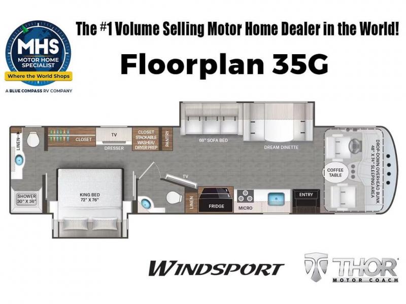 Thor Motor Coach Windsport Class A gas motorhome 35G highlights: