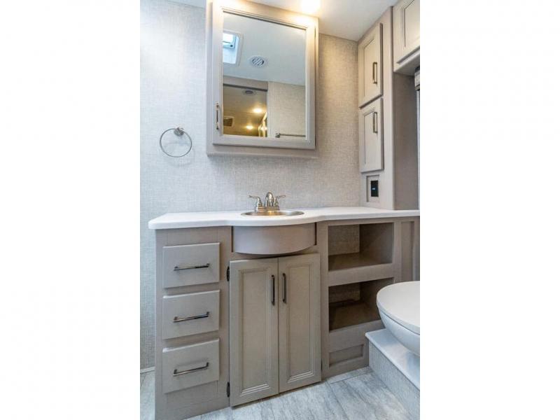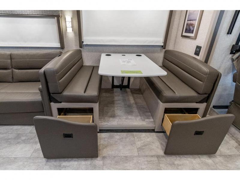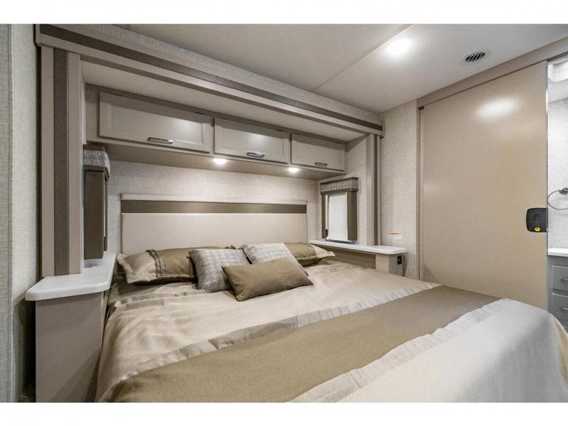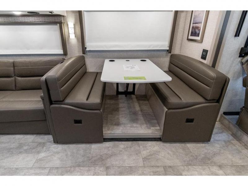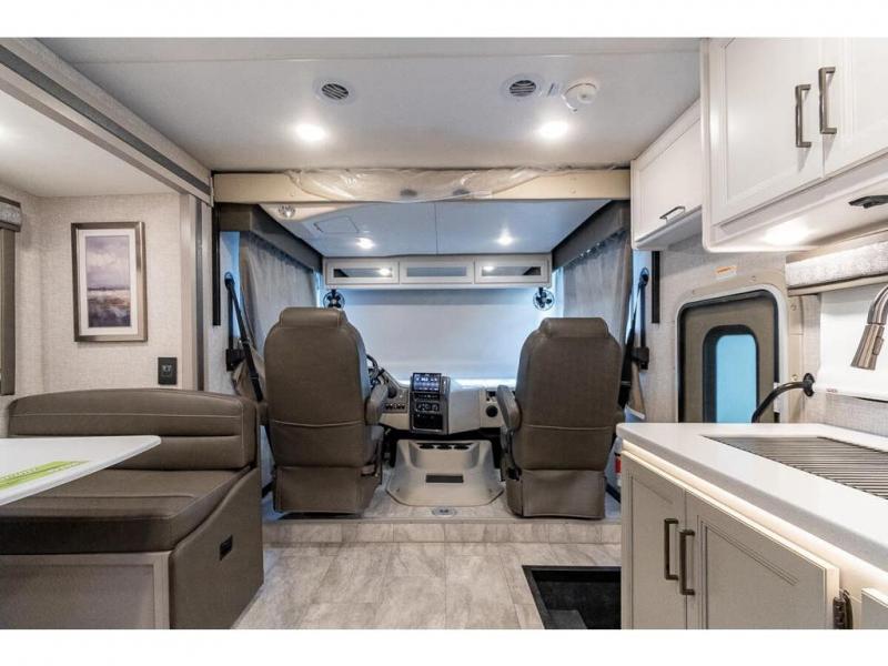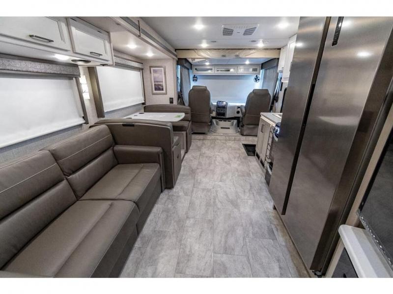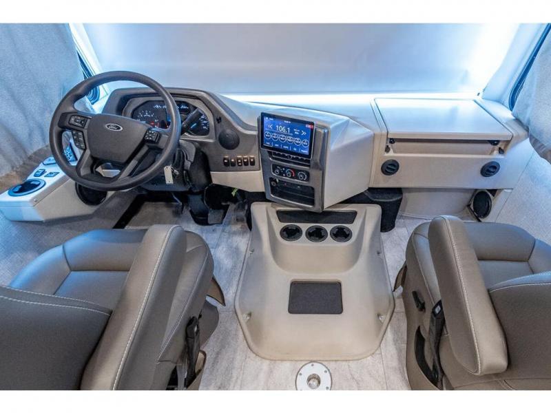 There are all sorts of adventures to be had with the Thor Motor Coach Windsport Class A gas motorhome! Built on a Ford F-53 chassis, the Windsport will gather lots of attention with its HD-MAX® exterior with graphics package. It also offers you a basement pass-through storage and a Pet-Link™ multi-purpose tie-down. There are also reclining/swivel leatherette captain's chairs to relax in while you travel. The Winegard® ConnecT™ Wi-Fi extender +4G will allow you to post on your social media or send an email from the cockpit's dash work station, and the Rapid Camp+® multiplex wiring control system with Bluetooth and 7" touchscreen will allow you to control and monitor the various electrical systems on your coach. This coach will also make you feel right at home with residential vinyl flooring, decorative glass and tile backsplash, a designer headboard, bedspread, and pillow shams, and many more comforts!
