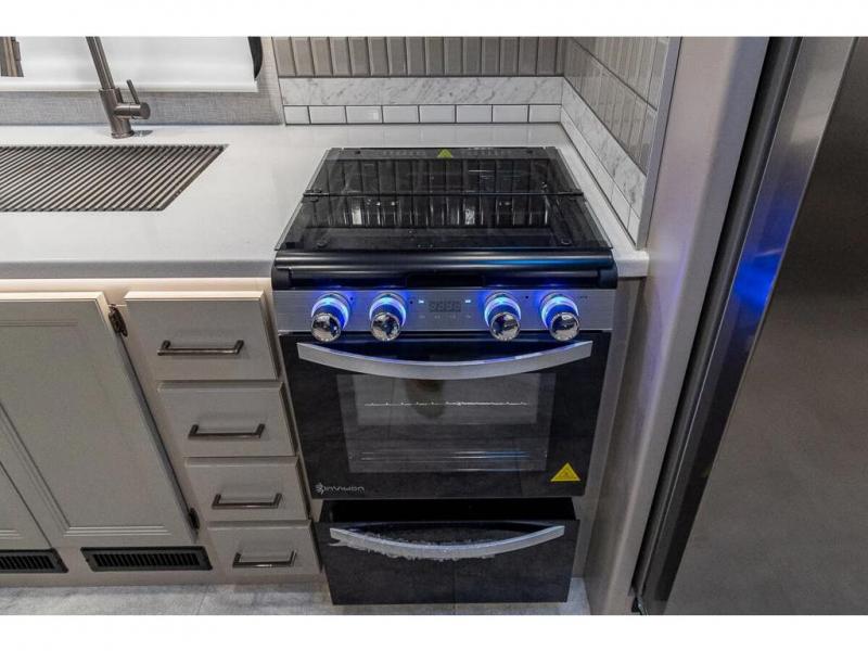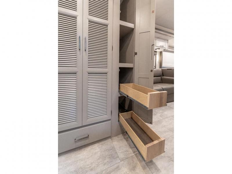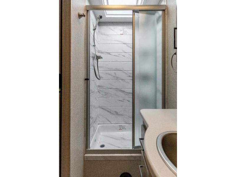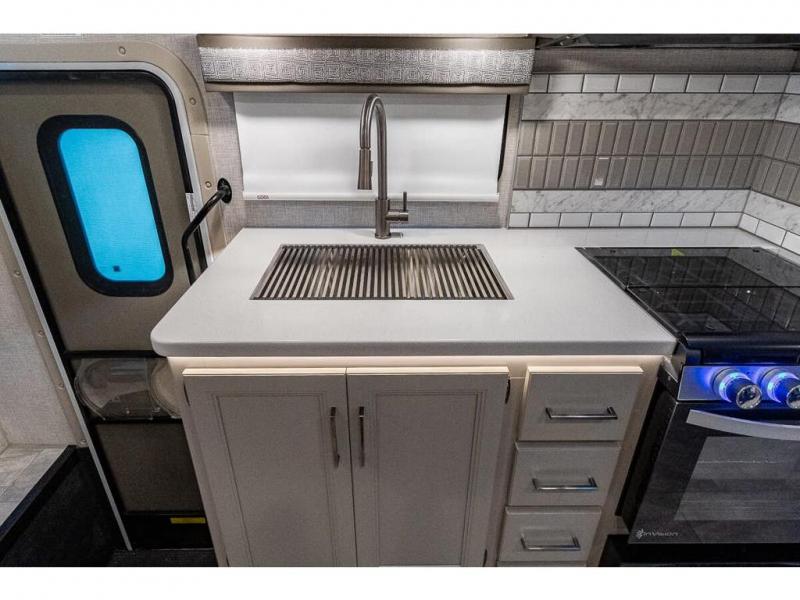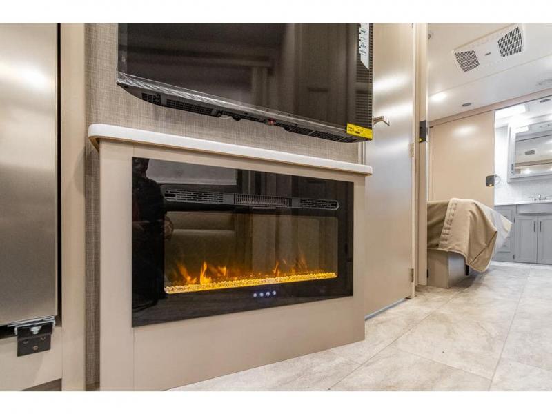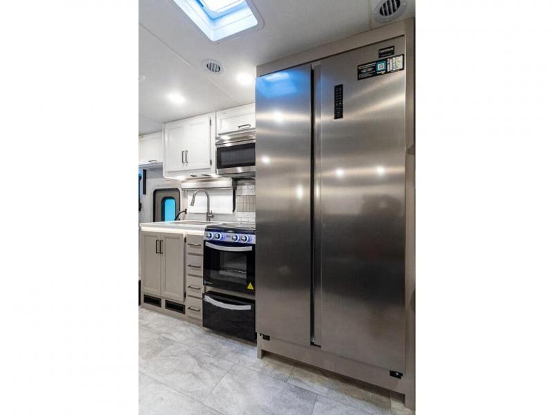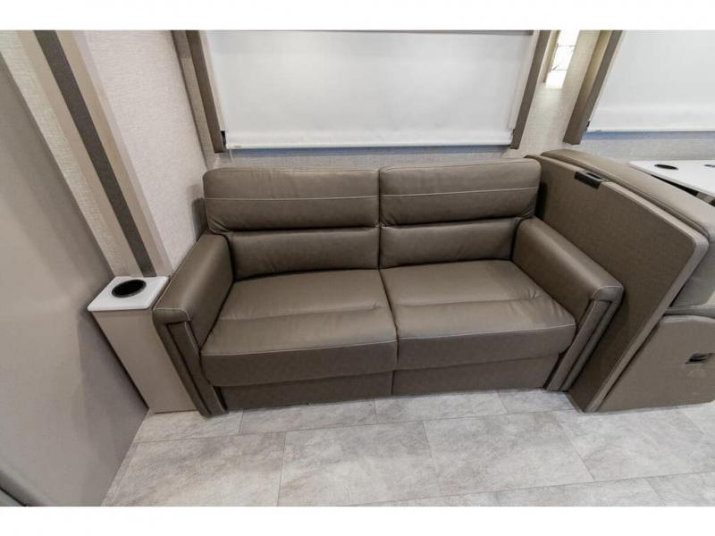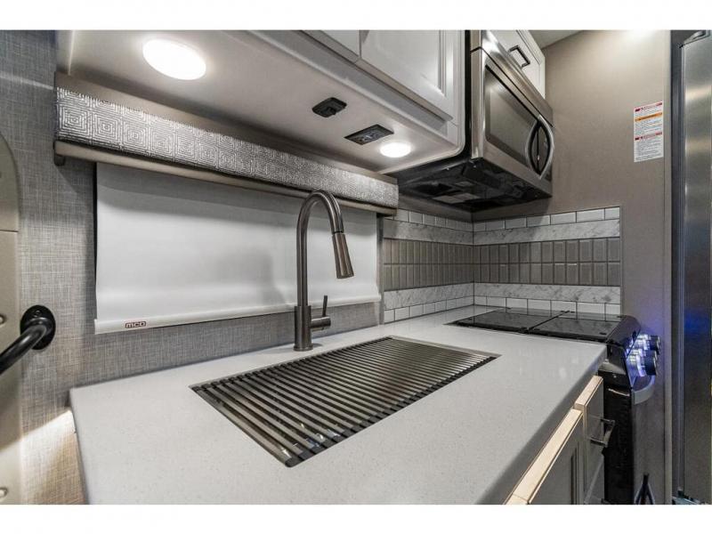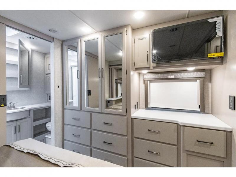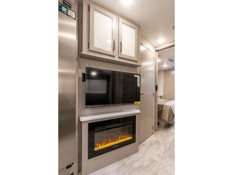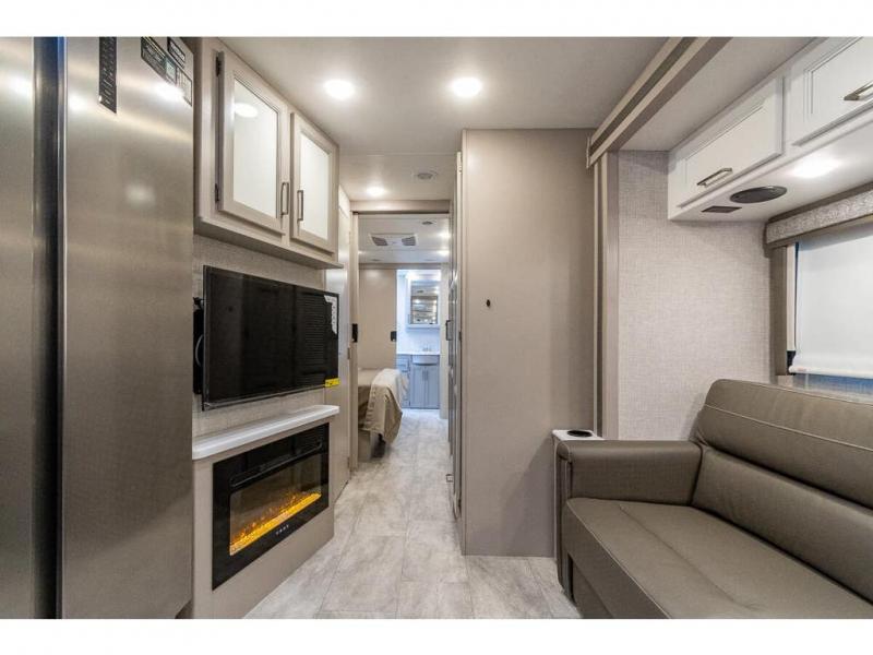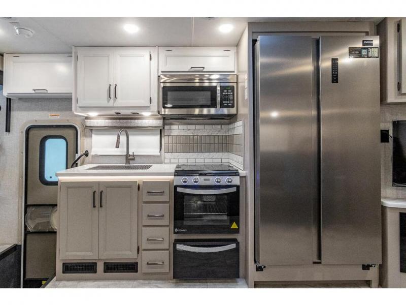 Get ready to take your travels to new heights with our incredible Class A motorhome! The full rear bathroom is spacious and convenient, complete with a generous 30” x 36” shower. The private bedroom is a haven of relaxation, featuring a king bed, closet, dresser, and 32” LED smart TV for relaxing. The living room/kitchen area is the center of the home, equipped with a closet, stackable washer, and dryer prep, half bathroom, linen closet, pantry, 68” sofa bed, dream dinette to share a meal with family, 40” LED smart TV to have an entertaining time with your family and friends, plus a fridge, microwave, and 3-burner cooktop, that will make your cooking experience enjoyable. But that's not all - this motorhome also features a drop-down overhead bunk sleeping area, perfect for kids or guests. This unit is also the best choice if you are seeking comfort time outside thanks to its massive 18’ awning ideal for enjoying the fresh air and a 32” TV for outdoor entertainment.
