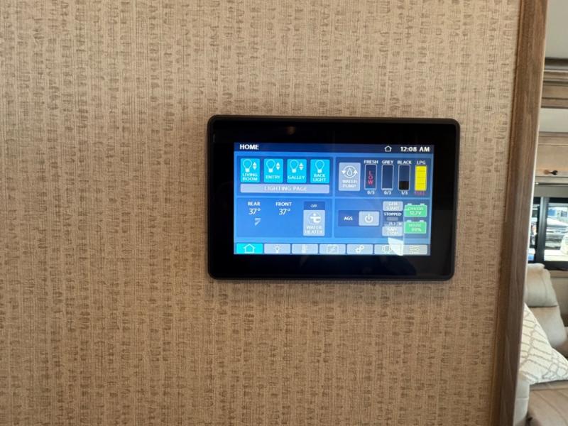 Smart Technology Integration with a digital touchscreen control system for managing lighting, climate, and slide-outs.