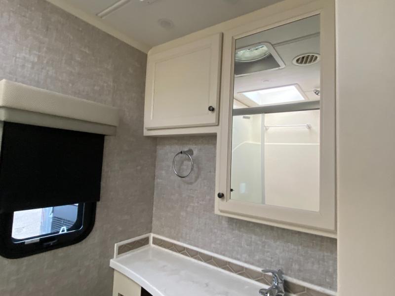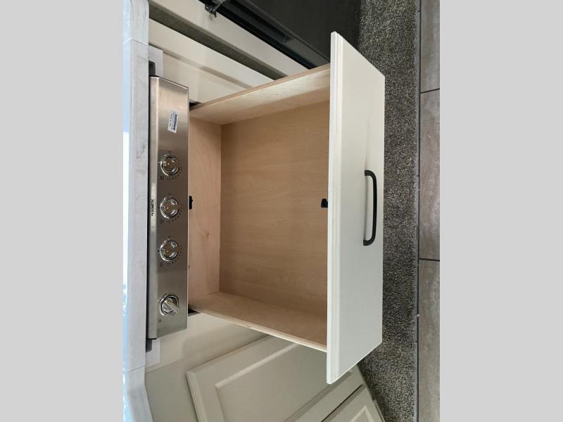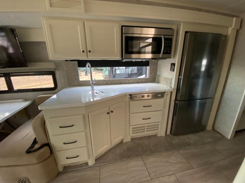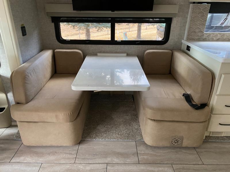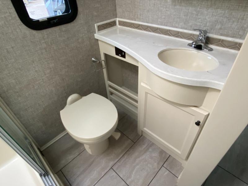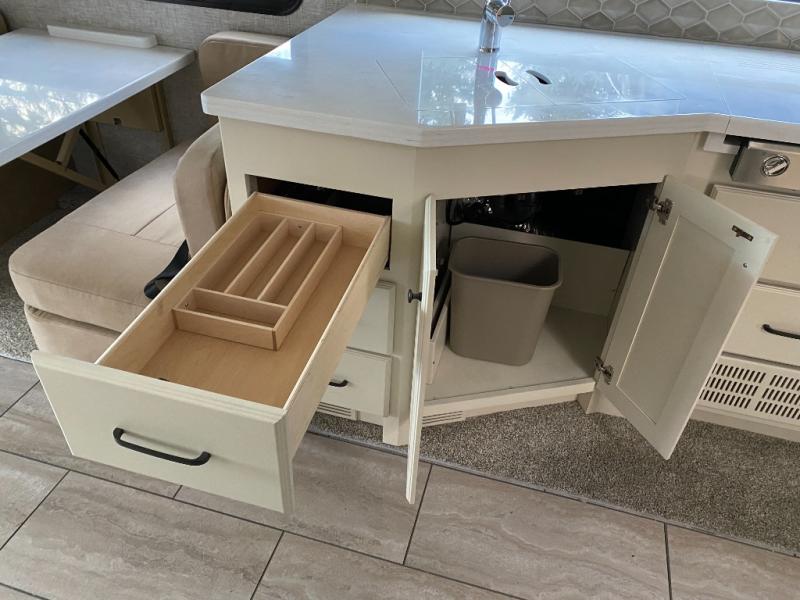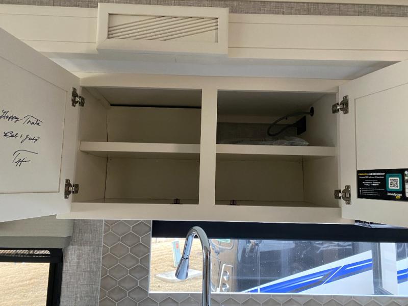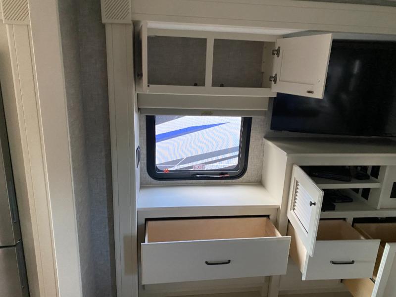 If you've been in the market for a coach with added interior space and at-home comforts, look no further than this Byway! The super sofa and booth dinette sleeper will provide cozy seating space plus additional sleeping spaces for your guests. If you need even more, just choose the optional drop-down front bunk! The kitchen includes everything you need to prepare meals each day, including a 1.5 cu. ft. Smart convection microwave, task lighting, and a 18 cu. ft. residential refrigerator with a bottom freezer. The mid coach full bath lets you stay clean throughout each trip, and the rear private bedroom will be your own oasis at night. Here, you'll find a king bed slide out with nightstands on either side, a mounted TV, a spacious wardrobe, plus stacked washer/dryer prep if you want the option for easy wash days!
