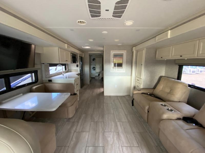 Say hello to affordable luxury with the Byway Class A diesel motorhomes by Tiffin Motorhomes. Each model includes an Allison 2500 MH 6-speed automatic transmission for power you can feel, and a Freightliner XCS straight rail rear engine diesel chassis for a strong foundation. All of your power needs will be met with an 8.0kW Onan Quiet diesel generator, 2,000-watt Pure Sine wave inverter, and (4) 6-volt, 230-amp hours flooded lead-acid house batteries. A Truma AquaGo comfort instant water heater is a feature you won't want to travel without, and the Spyder controls multiplex system keeps you in control of your units functions. It won't be hard to find luxury features inside, like the handcrafted overhead cabinetry, solid surface countertops, full tile backsplash in the kitchen, and Ultrafabrics Montage captain's seats. The Lippert On-The-Go ladder is now standard, and the optional Starlink prep means you can work while you're on the road if you choose!