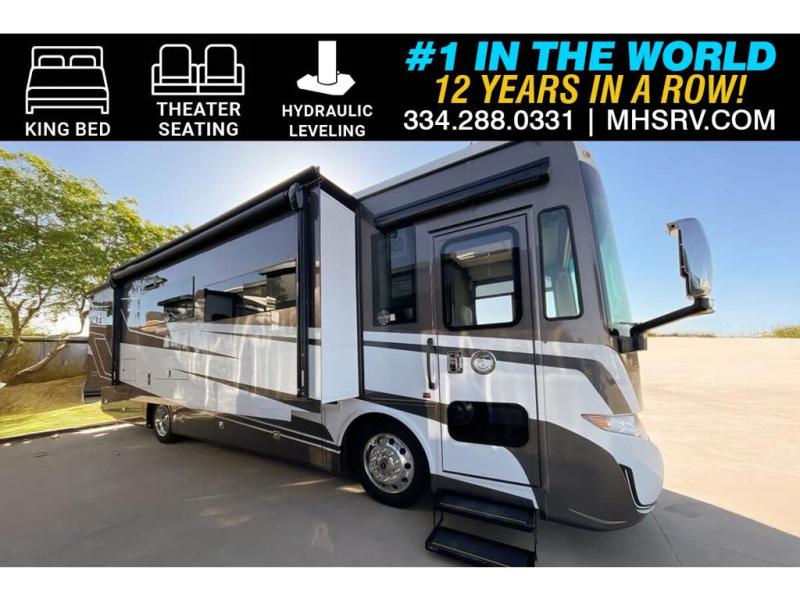 Say hello to affordable luxury with the Byway Class A diesel motorhomes by Tiffin Motorhomes. Each model includes an Allison 2500 MH 6-speed automatic transmission for power you can feel, and a Freightliner XCS straight rail rear engine diesel chassis for a strong foundation. All of your power needs will be met with an 8.0kW Onan Quiet diesel generator, 2,000-watt Pure Sine wave inverter, and (4) 6-volt, 230-amp hours flooded lead-acid house batteries. A Truma AquaGo comfort instant water heater is a feature you won't want to travel without, and the Spyder controls multiplex system keeps you in control of your units functions. It won't be hard to find luxury features inside, like the handcrafted overhead cabinetry, solid surface countertops, full tile backsplash in the kitchen, and Ultrafabrics Montage captain's seats. The Lippert On-The-Go ladder is now standard, and the optional Starlink prep means you can work while you're on the road if you choose!