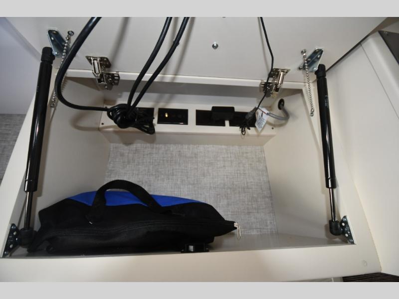 Head out to explore whenever the mood hits you! This coach provides a comfortable and luxurious way to travel from the cab features to the sleeping accommodations. The driver and passenger will have a tray for smartphones with charging ports, heated/electric adjustable mirrors, leather seats, and they might like to add the side-view cameras option. You can dine at the tri-fold sofa after whipping up a meal using the kitchen appliances including a convection microwave, and the countertop extension will surely come in handy. The split bathroom includes a shower along one side and a private toilet and sink on the opposite so two people can get ready at the same time. At night, fall quickly to sleep on the rear twin beds which allow you easy access to the bathroom, plus the nightstand will come in handy to place your cellphones and drinks. You will also find shelves for storage, and you might like to add an optional TV to watch. You might even like add a living room TV option and/or exterior TV option, the choice is yours.