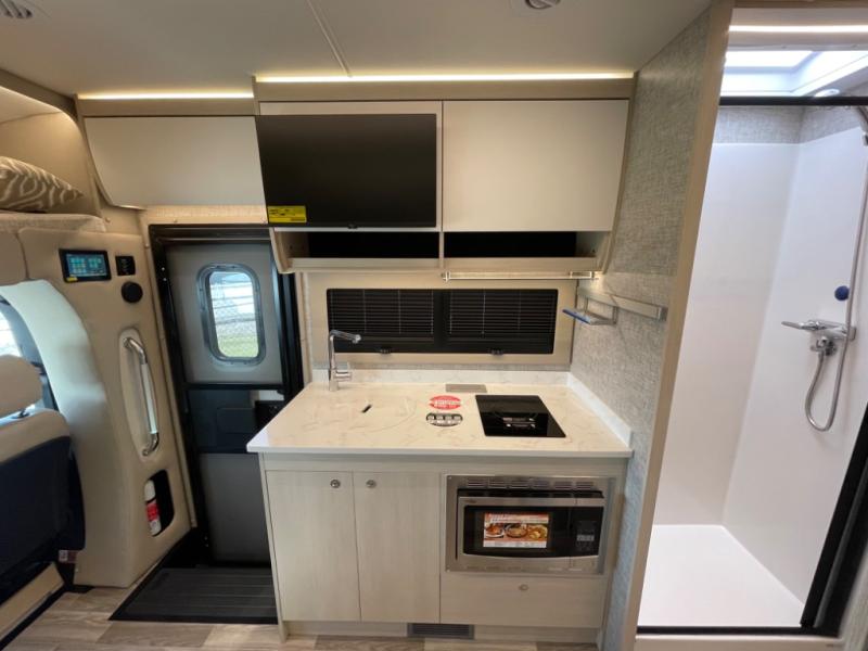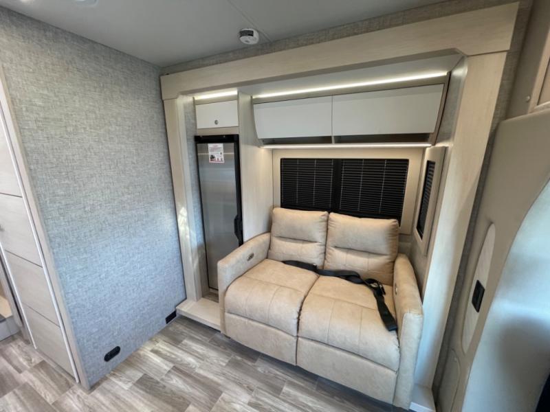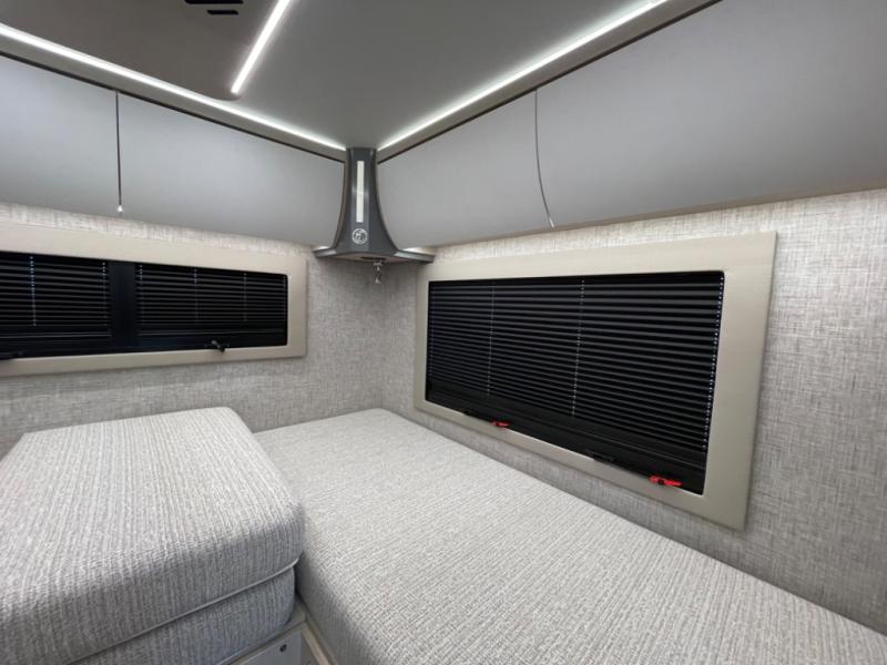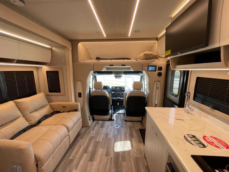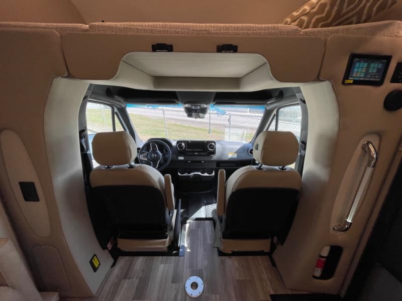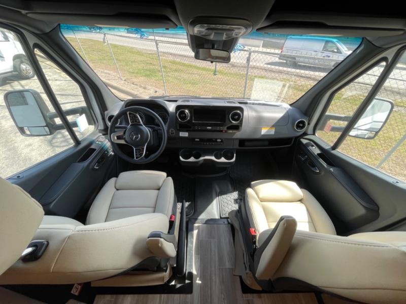 With any Wayfarer Class C diesel coach by Tiffin Motorhomes you will enjoy luxury features both inside and out. There are one-piece molded gel-coat fiberglass front and rear caps plus full-body paint and two layers of clear coat for added protection. The Mercedes-Benz 3500XD dual wheel cutaway chassis provides a strong foundation, and the 2.0L V4 turbo diesel high output 208 HP diesel engine with 332 lb-ft torque will keep you going adventure after adventure! You will love the drive just as much as the destination with adjustable captain's seats that are also heated, intelligent navigation, and a Mercedes-Benz MBUX multimedia system with a 10.25" touchscreen. Wherever you decide to roam, you will be met with interior comforts that include high pressure laminate cabinets, solar and privacy shades, solid surface galley countertops and task lighting, and a wardrobe in the bedroom to keep your space tidy.