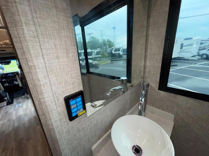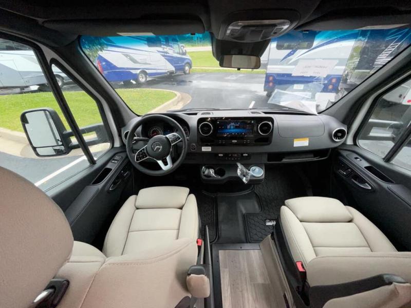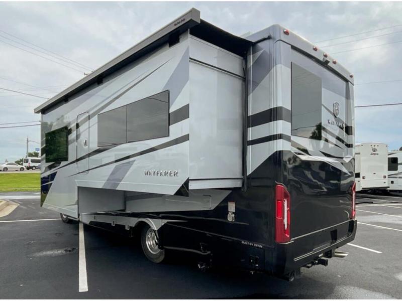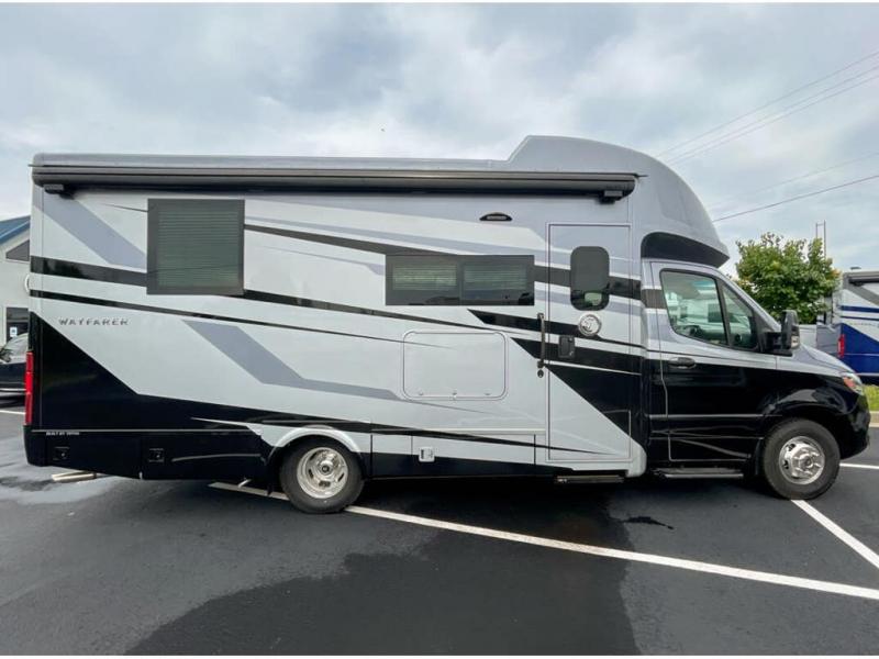 With any Wayfarer Class C diesel coach by Tiffin Motorhomes you will enjoy luxury features both inside and out. There are one-piece molded gel-coat fiberglass front and rear caps plus full-body paint and two layers of clear coat for added protection. The Mercedes-Benz 3500XD dual wheel cutaway chassis provides a strong foundation, and the 2.0L V4 turbo diesel high output 208 HP diesel engine with 332 lb-ft torque will keep you going adventure after adventure! You will love the drive just as much as the destination with adjustable captain's seats that are also heated, intelligent navigation, and a Mercedes-Benz MBUX multimedia system with a 10.25" touchscreen. Wherever you decide to roam, you will be met with interior comforts that include handcrafted overhead cabinetry, solar and privacy shades, solid surface galley countertops and task lighting, and a wardrobe in the bedroom to keep your space tidy.