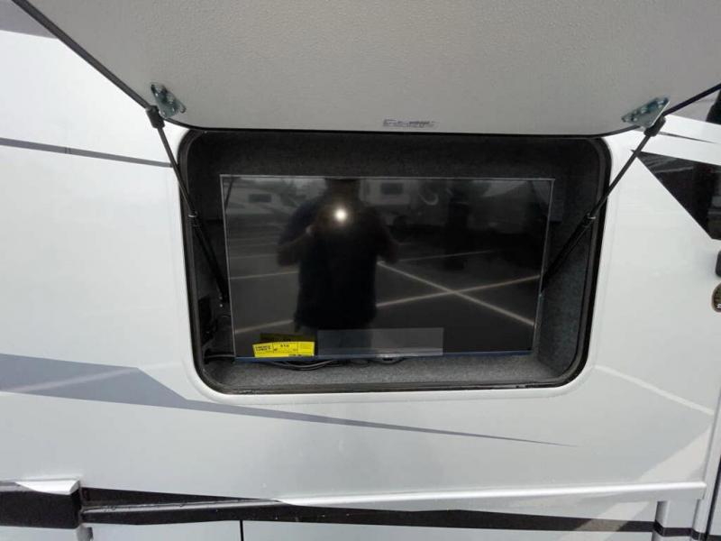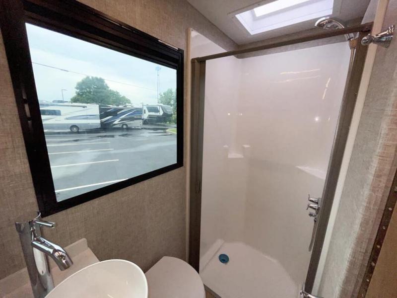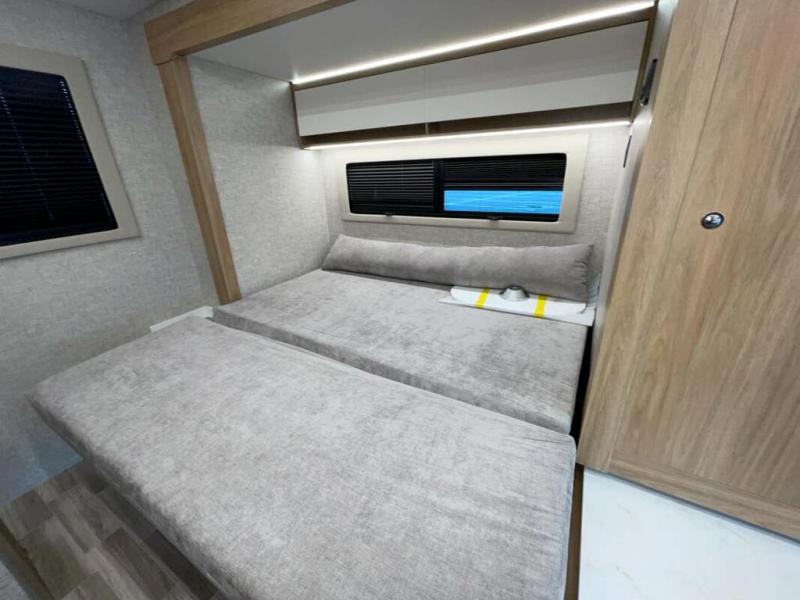 Experience unparalleled freedom and luxury with your favorite person in the most amazing motorhome, perfect to see nature along the highways and wherever the road takes you! You will find the perfect place to rest in the extra comfy king bed, there are nightstands and a spacious wardrobe for keeping all your belongings organized. In front of it, you will enjoy the convenience of the full bathroom, which features a 32” x 36” shower and has everything you need to unwind and relax when taking a bath. Cooking has never been easier thanks to the incredible kitchen, boasting a pantry, refrigerator, microwave, and a U-shape dinette where you can comfortably eat your meals, play board games, or have an entertaining time with your loved ones.