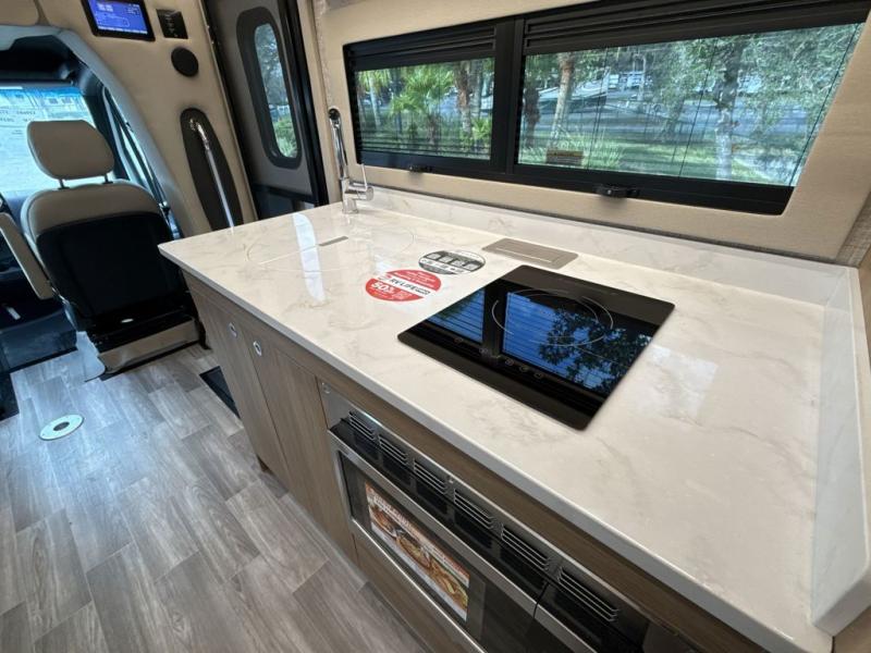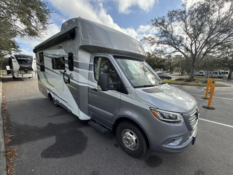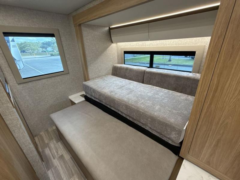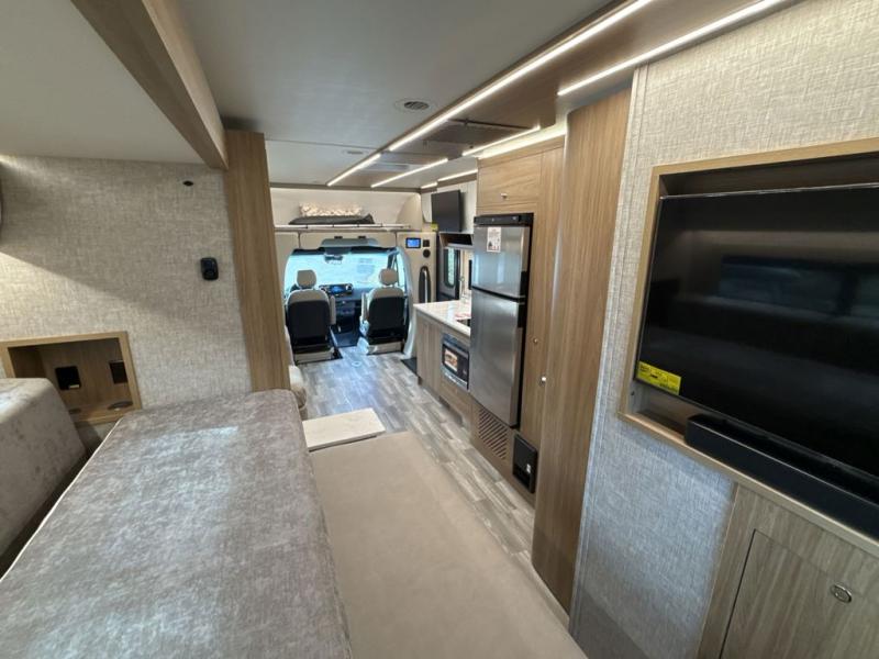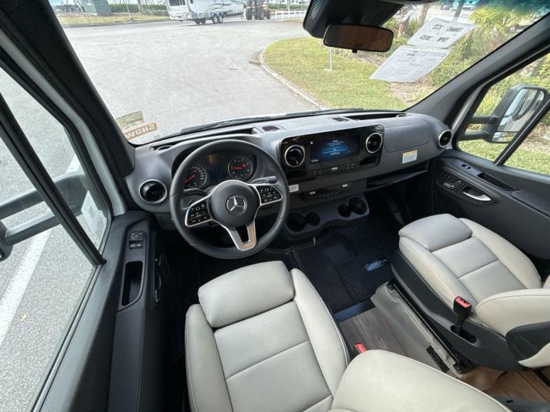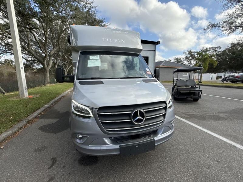 With any Wayfarer Class C diesel coach by Tiffin Motorhomes you will enjoy luxury features both inside and out. There are one-piece molded gel-coat fiberglass front and rear caps plus full-body paint and two layers of clear coat for added protection. The Mercedes-Benz 3500XD dual wheel cutaway chassis provides a strong foundation, and the 2.0L V4 turbo diesel high output 208 HP diesel engine with 332 lb-ft torque will keep you going adventure after adventure! You will love the drive just as much as the destination with adjustable captain's seats that are also heated, intelligent navigation, and a Mercedes-Benz MBUX multimedia system with a 10.25" touchscreen. Wherever you decide to roam, you will be met with interior comforts that include handcrafted overhead cabinetry, solar and privacy shades, solid surface galley countertops and task lighting, and a wardrobe in the bedroom to keep your space tidy.