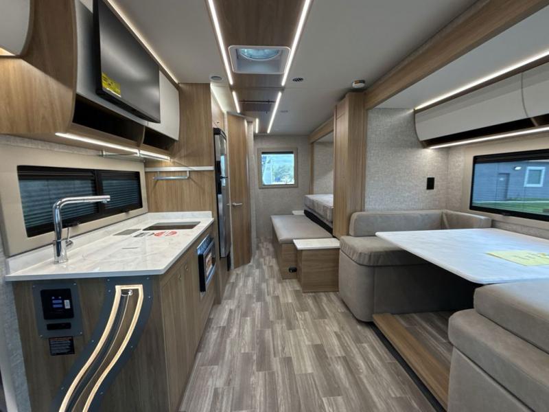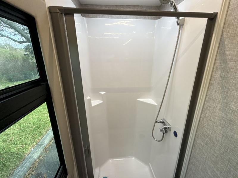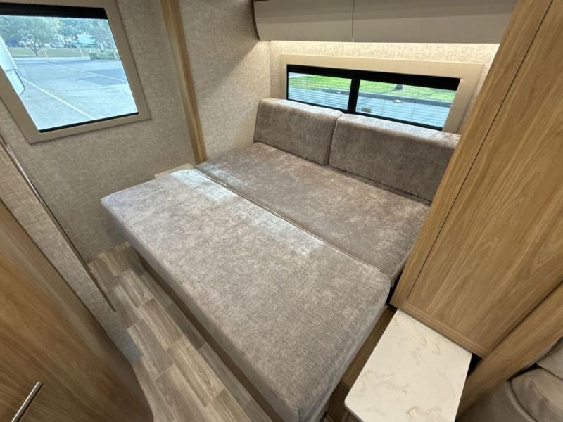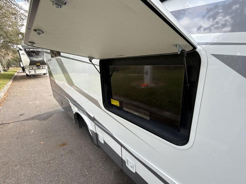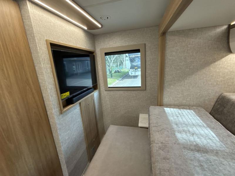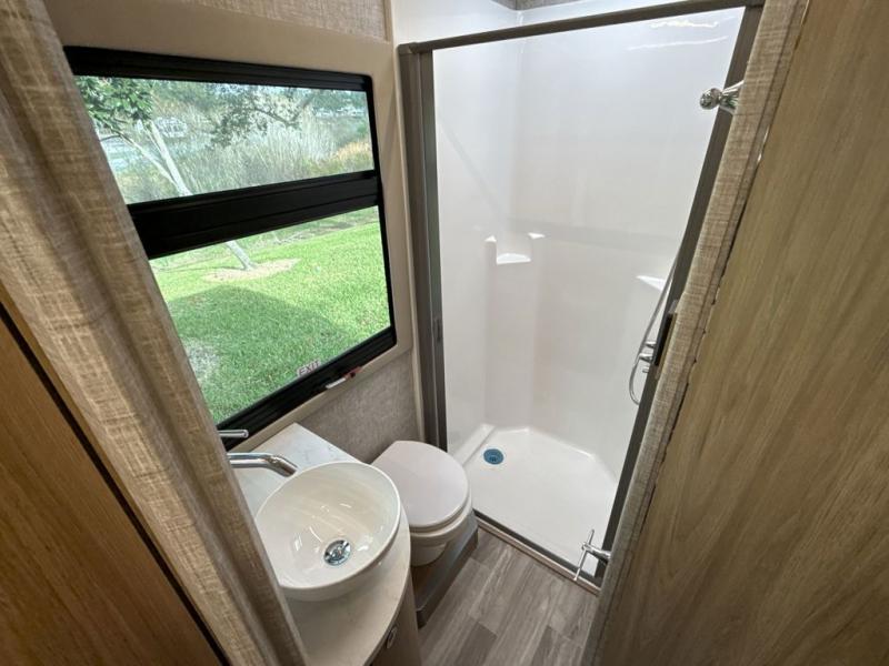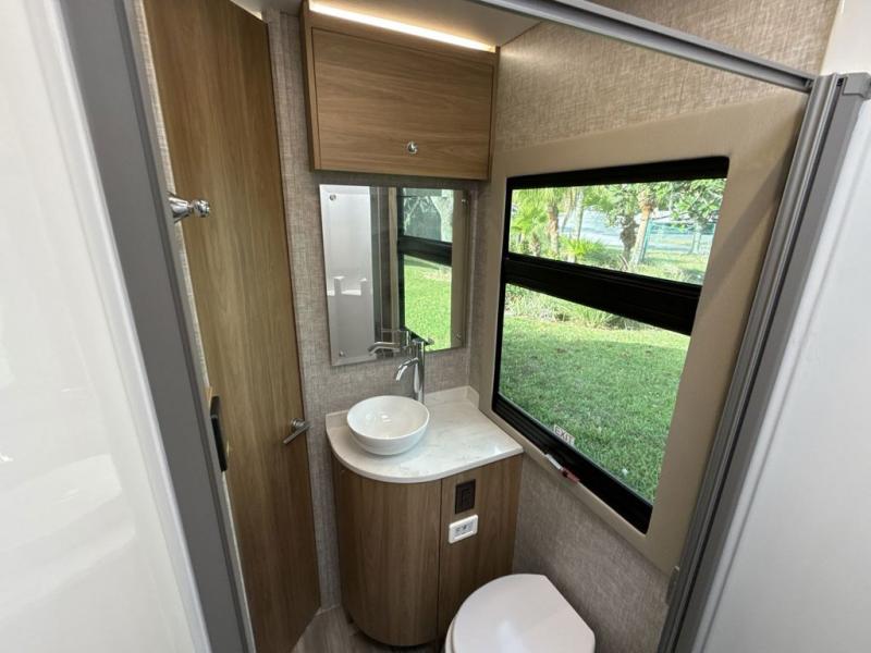 Experience unparalleled freedom and luxury with your favorite person in the most amazing motorhome, perfect to see nature along the highways and wherever the road takes you! You will find the perfect place to rest in the extra comfy king bed, there are nightstands and a spacious wardrobe for keeping all your belongings organized. In front of it, you will enjoy the convenience of the full bathroom, which features a 32” x 36” shower and has everything you need to unwind and relax when taking a bath. Cooking has never been easier thanks to the incredible kitchen, boasting a pantry, refrigerator, microwave, and a U-shape dinette where you can comfortably eat your meals, play board games, or have an entertaining time with your loved ones.