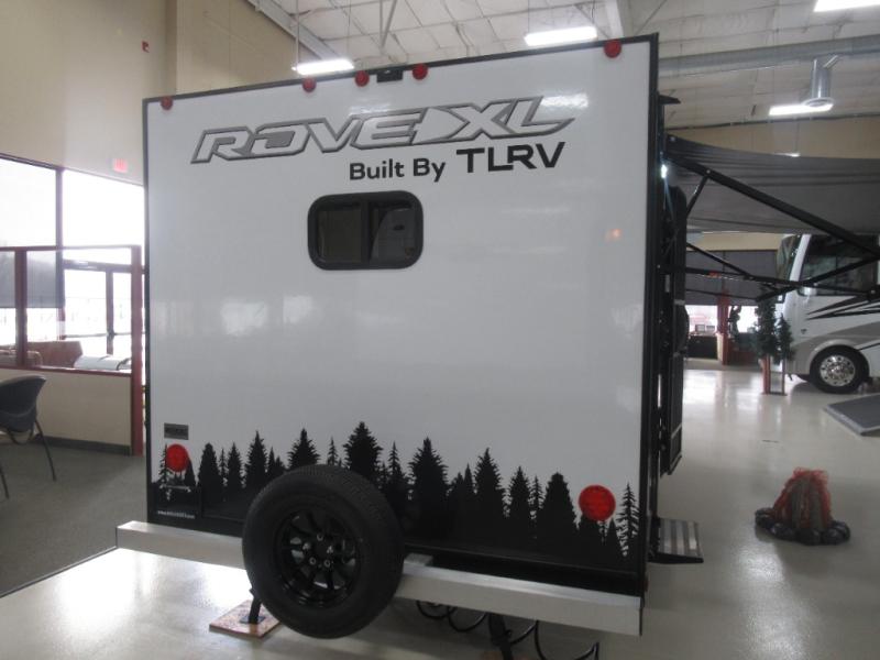 The Rove XL travel trailers by Travel Lite are ready for adventure when you are! Their two toned Hydro-Lite exterior, laminated floor construction, and aluminum roof structure make them durable and easy to tow. You will love the spacious interiors that allow you to relax comfortably and store your belongings. The 18K BTU furnace and A/C unit will keep you comfortable in spring or fall and the detachable 30 Amp power cord plus 200 watt solar panels will provide your power needs. Optional equipment that can be added include a 12' electric side awning, electric tongue jack, stereo with indoor/outdoor speakers, and more!