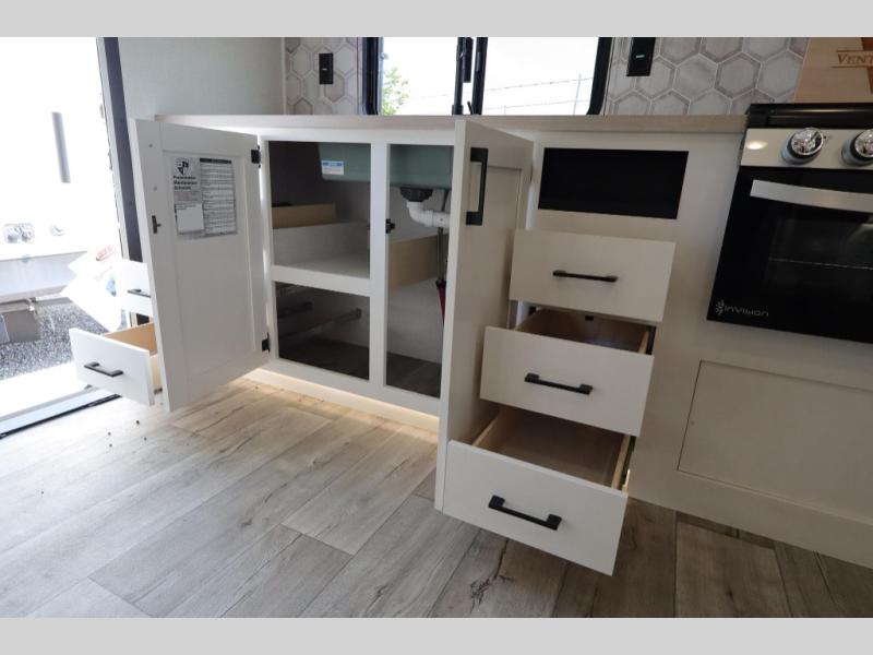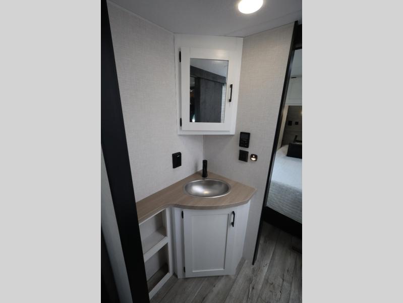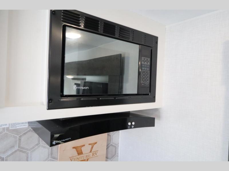 With any Sienna travel trailer by Venture RV, you will enjoy a lightweight unit, convenient amenities, and a durable construction that includes a BAL NXG-bolted frame. There is also a heated and enclosed one-piece underbelly, residential fiberglass insulation, and a reflective PVC roof membrane within the Weather-Shield Package to help extend your camping season. Outside, the BAL 5.0 power stabilizer jacks and power tongue jack will have you set up in no-time, and the Venture RV bottle opener/dog tie down will make it easy to bring your furry friends along. Head inside to enjoy the modern farmhouse design, along with Beauflor throughout with no carpet, custom backsplash, large underbed storage, and a bath skylight to name a few comforts!