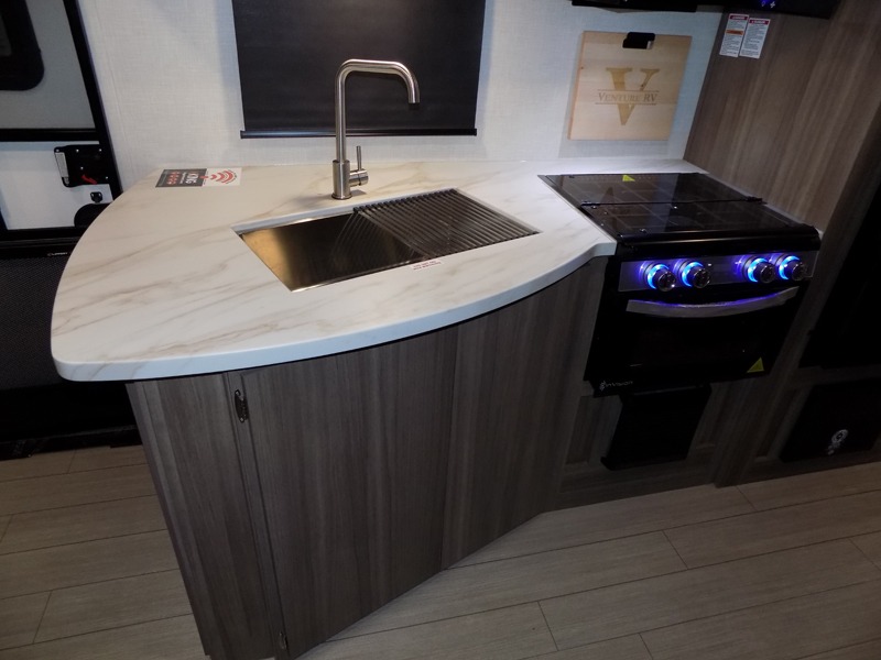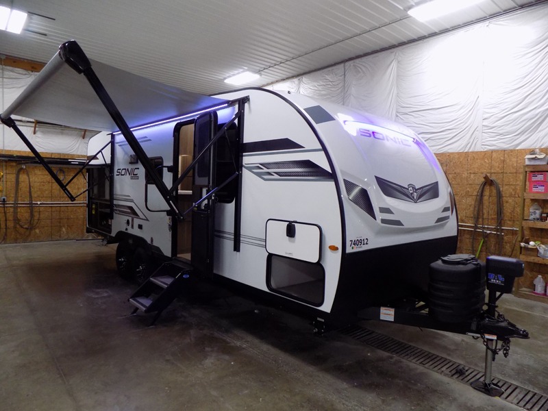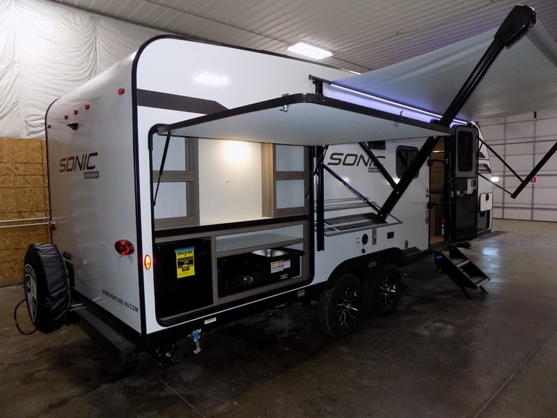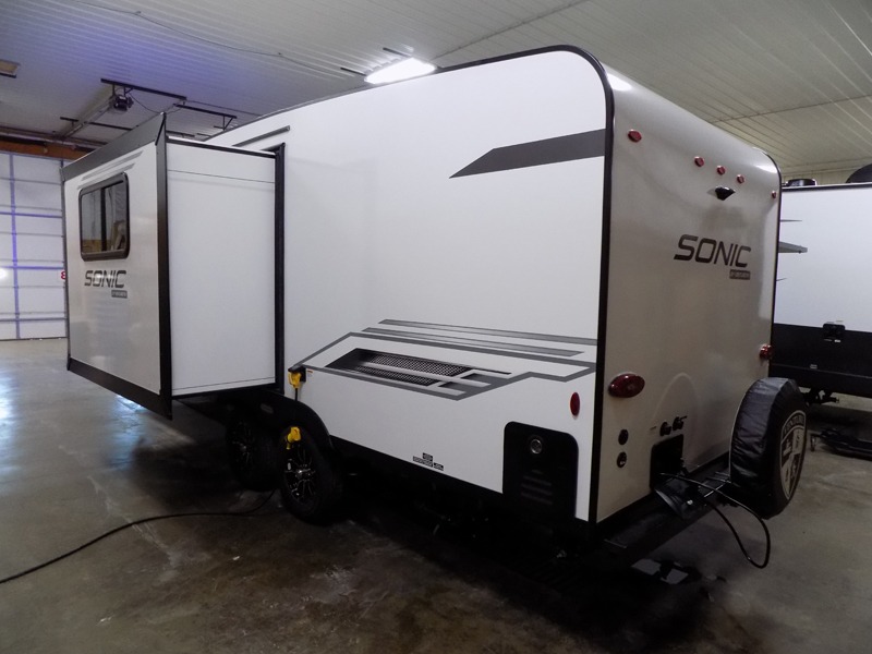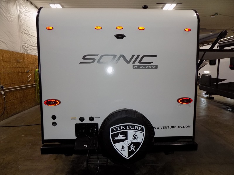 With any Sonic travel trailer by Venture RV, you begin with Next Generation in RV frame technology with the NXG Huck-bolt frame, AZDEL Onboard composite panels, tongue and groove plywood floor decking, radiant foil bubble insulation-wrapped tanks, 360-degree residential fiberglass insulation and radiant foil insulation, plus a forced-air heated and enclosed underbelly which is part of the Weather-Shield package. There is a Highway Package that comes mandatory, and the Fall Package 1.6 provides a motion light in the bathroom, a dish drying sink cover, a power tongue jack, and WIFI prep to mention a few features. Get ready for comfort and style in a Sonic ultra-lightweight, tandem-axle travel trailer of your choice!