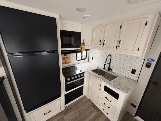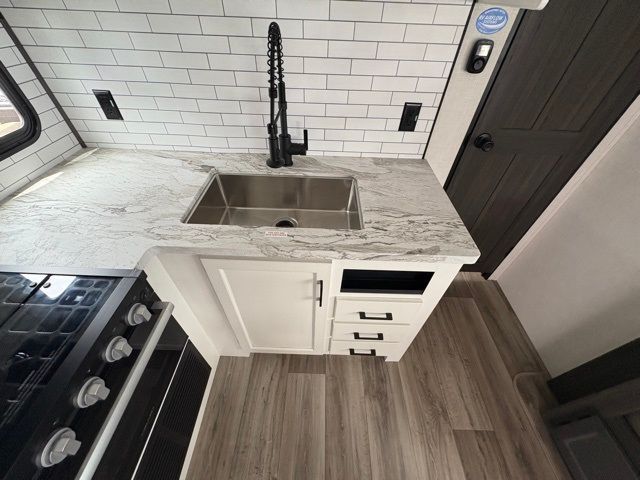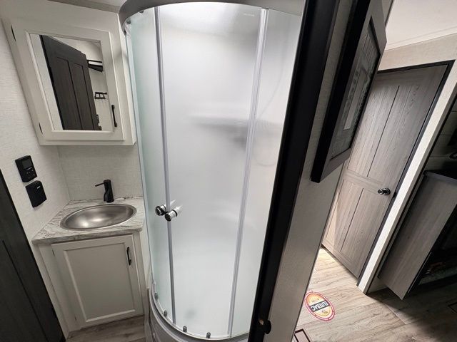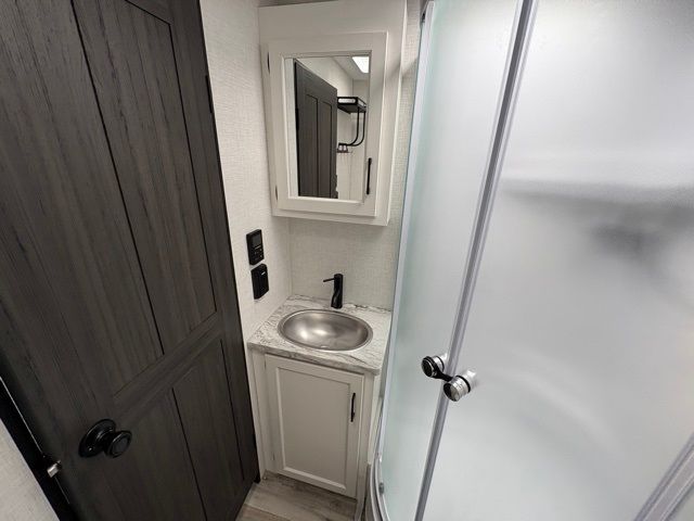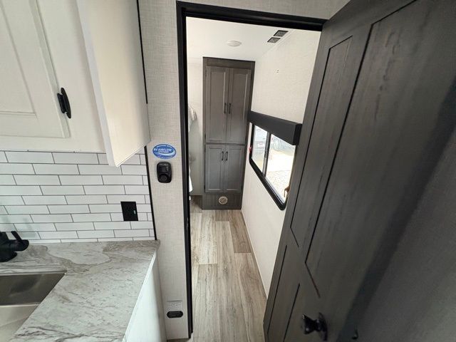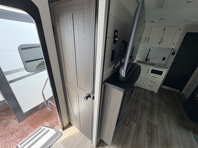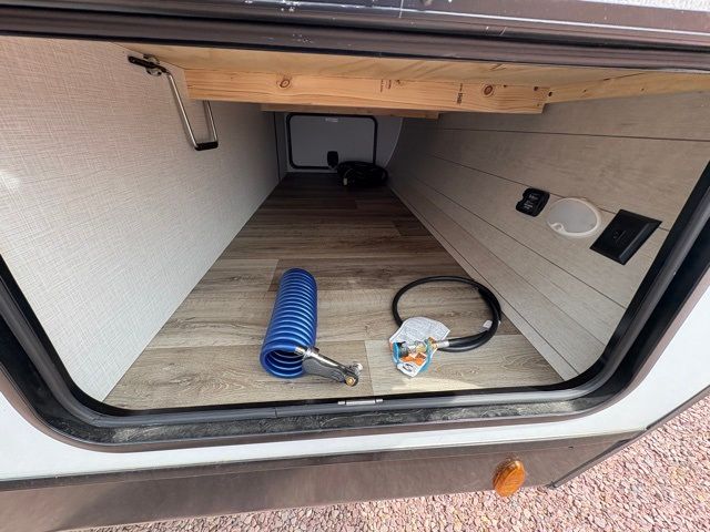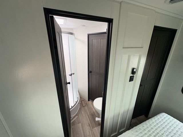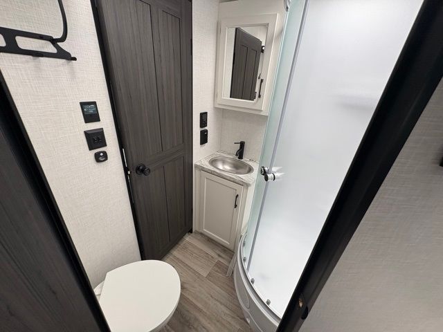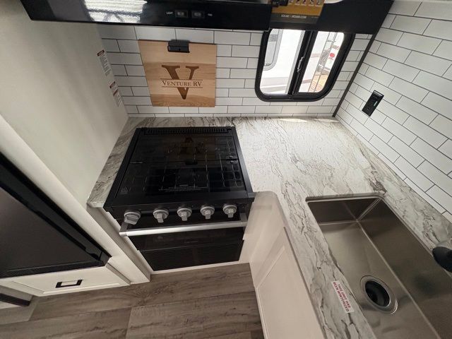 Every Venture RV SportTrek lightweight travel trailer is constructed to offer peace of mind and the comforts of home! Their purposeful residential kitchens are packed with handy features like a Furrion oven and three burner cooktop, a large stainless steel sink with a cover and dish drying rack, plus a 12V refrigerator. You will find plenty of storage throughout, including Safe-Tek hidden storage with a charging center and StorMore nightstands on either side of the bed behind the full-length closets. And the magnetic slam-latch baggage doors and spacious pass-through storage area will hold your outdoor gear in place. They even come with a hot and cold exterior shower and SporTrek's Weather Shield which includes a forced air heated and enclosed underbelly, high output A/C ducting, and more features that will let you extend your camping season. You will also love the new residential upgraded furniture, Serta memory foam mattress, barn style passage doors, and many more comforts!