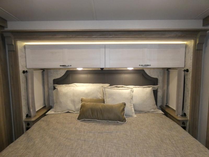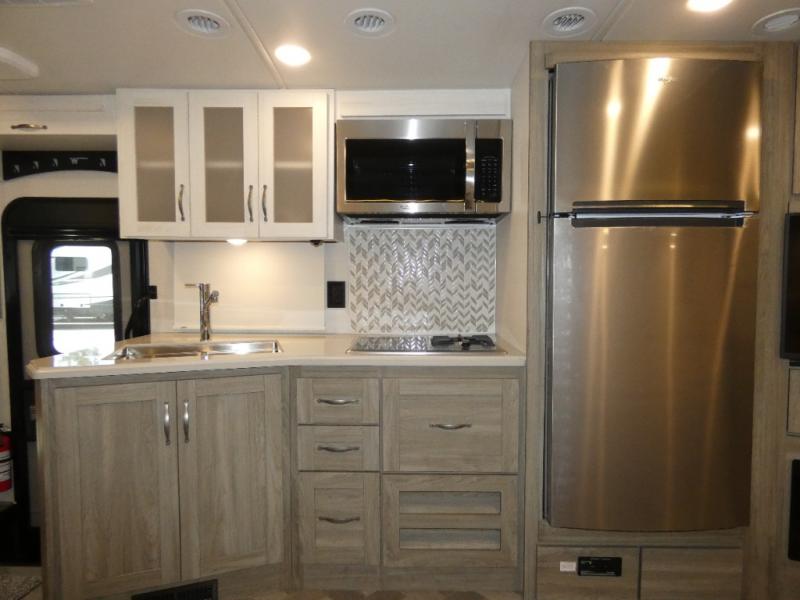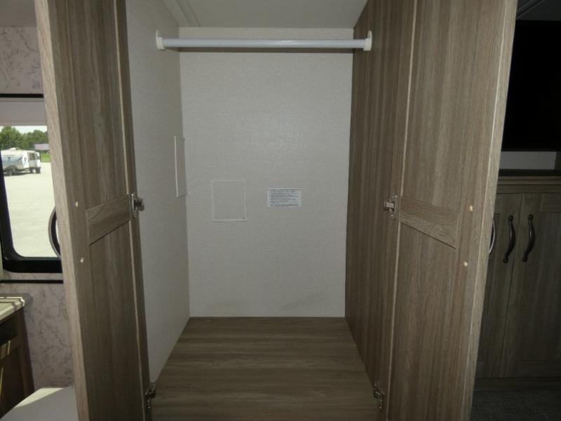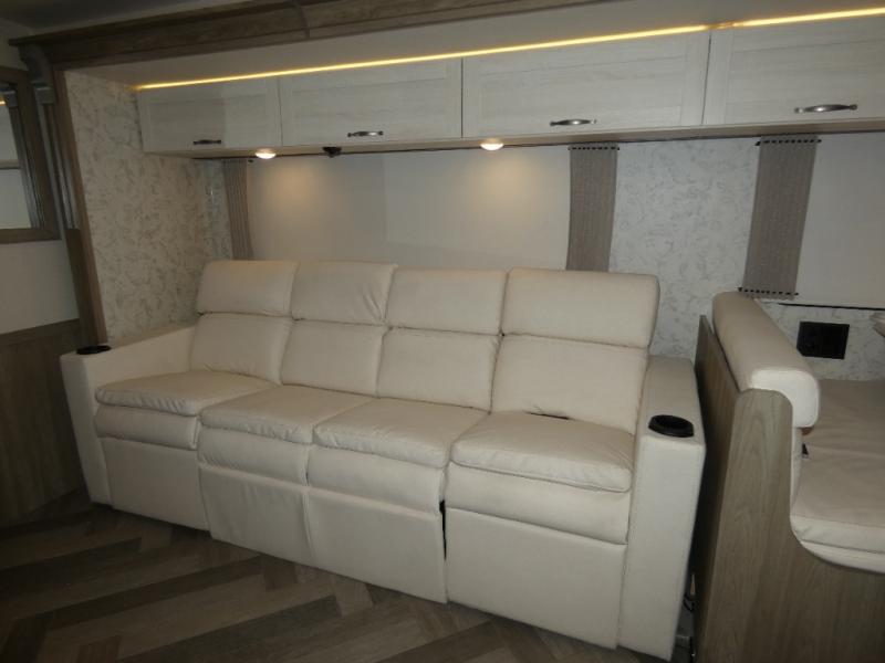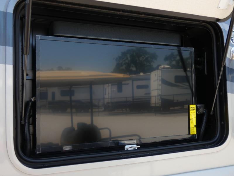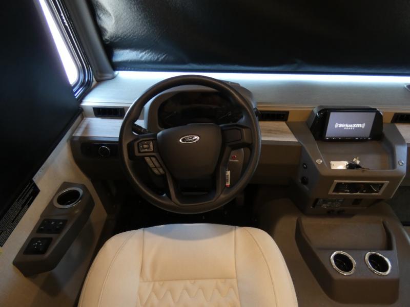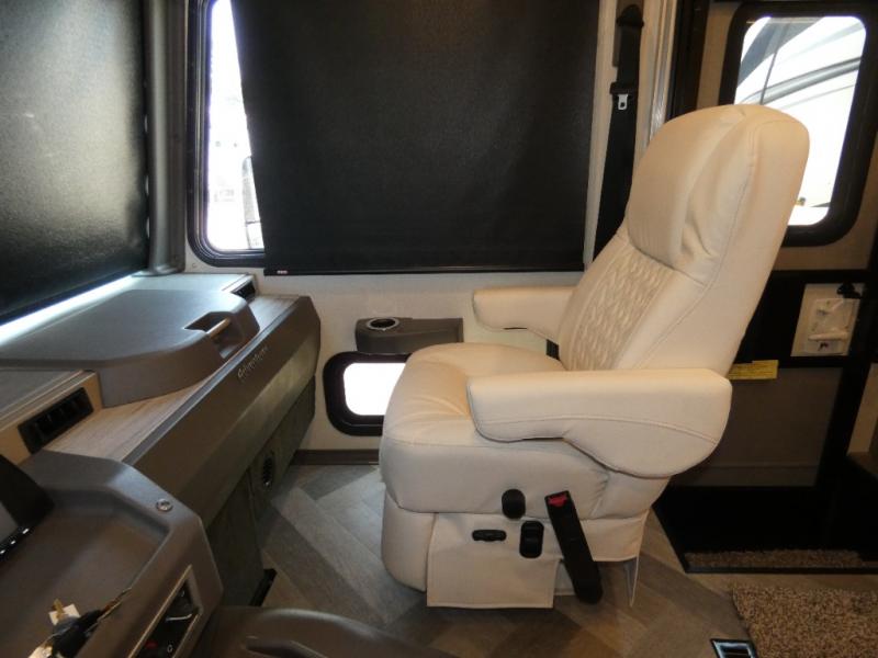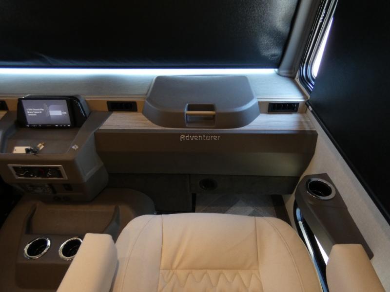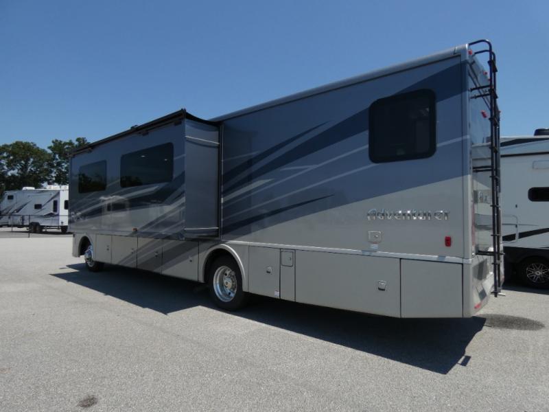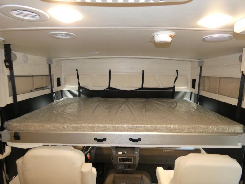 The family-friendly Adventurer Class A gas motorhome by Winnebago is the ultimate family getaway for your trips near and far. The swivel captain's seats include fixed lumbar support and multi-adjustable slide/recline for a truly comfortable ride. You will appreciate the Sony 9" TS radio with Bluetooth, a rearview and sideview monitor system with a color touch screen, SiriusXM ready, and more to make the drive easier than ever. There is also a Driver Confidence Package with added safety features for an overall better driving experience. The powered blackout roller visor/shade on the front windshield will provide privacy when you stop for lunch, and the dash workstation will come in handy when you've got a deadline. Each model includes residential vinyl flooring throughout, a soft vinyl ceiling, a Corian galley countertop, and ceramic tile backsplash. The under-bed storage will provide a place for your luggage, and you'll find lighted storage compartments outside for all your larger gear.