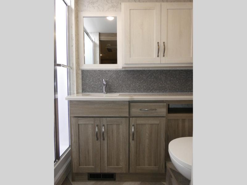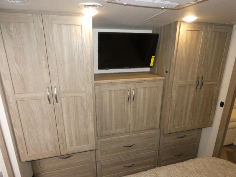 Traveling with your family or larger group will be so easy in this spacious Adventurer Class A gas motorhome. The full and half bath are sure to come in handy, and you'll find plenty of seating space for everyone with the theater sofa. Once the chef has prepared lunch on the gas/induction range top, the kids can enjoy it at the dinette with a Hi-Lo table, and the adults can take their plate outside to sit under the 16' power awning. Whether you're watching a movie on the 39" HDTV or just enjoying the glow of the electric fireplace, you will truly enjoy your time spent in this coach. The master bedroom includes a king bed slide, dual wardrobes and nightstands, and a space to add a washer and dryer if you choose.