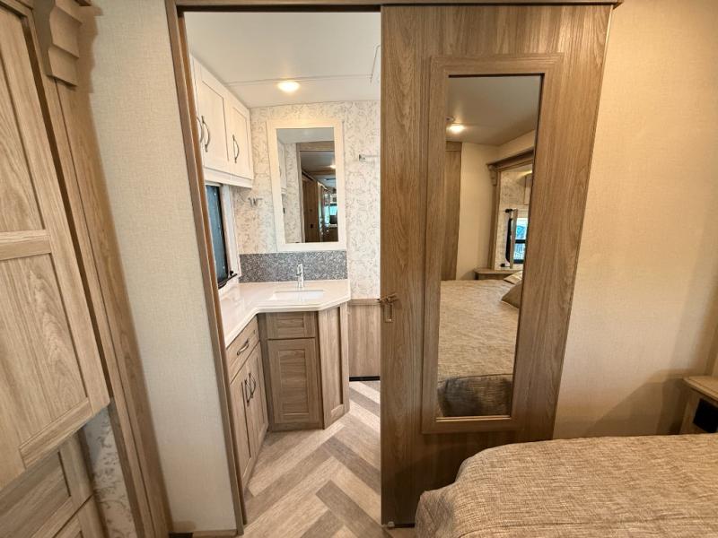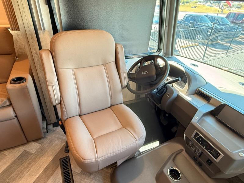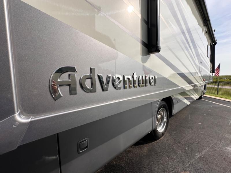 The family-friendly Adventurer Class A gas motorhome by Winnebago is the ultimate family getaway for your trips near and far. The swivel captain's seats include fixed lumbar support and multi-adjustable slide/recline for a truly comfortable ride. You will appreciate the Sony 9" TS radio with Bluetooth, a rearview and sideview monitor system with a color touch screen, SiriusXM ready, and more to make the drive easier than ever. There is also a Driver Confidence Package with added safety features for an overall better driving experience. The powered blackout roller visor/shade on the front windshield will provide privacy when you stop for lunch, and the dash workstation will come in handy when you've got a deadline. Each model includes residential vinyl flooring throughout, a soft vinyl ceiling, a Corian galley countertop, and ceramic tile backsplash. The under-bed storage will provide a place for your luggage, and you'll find lighted storage compartments outside for all your larger gear. The optional SumoSprings suspension system and steering stabilizing system can be added to make the drive even smoother, and the optional WinnSleep Premium Serene mattress is another option you may want to add for all-around comfort!