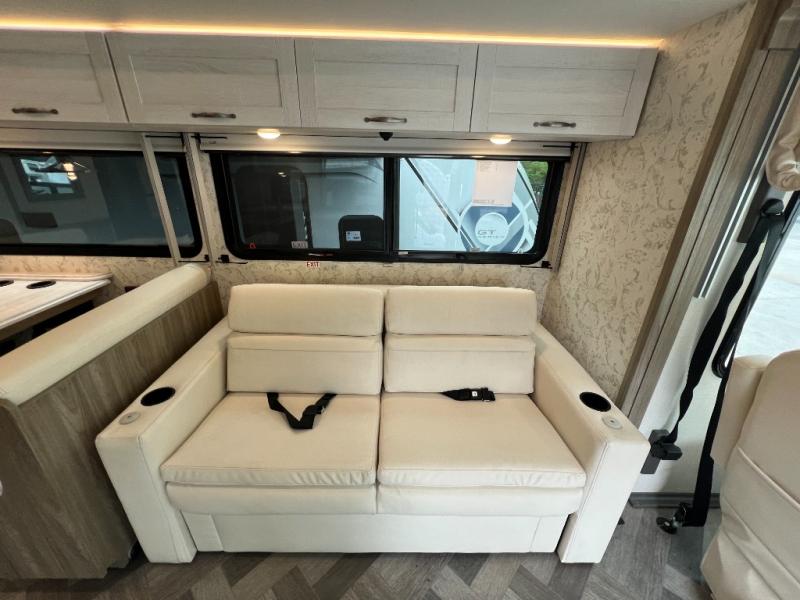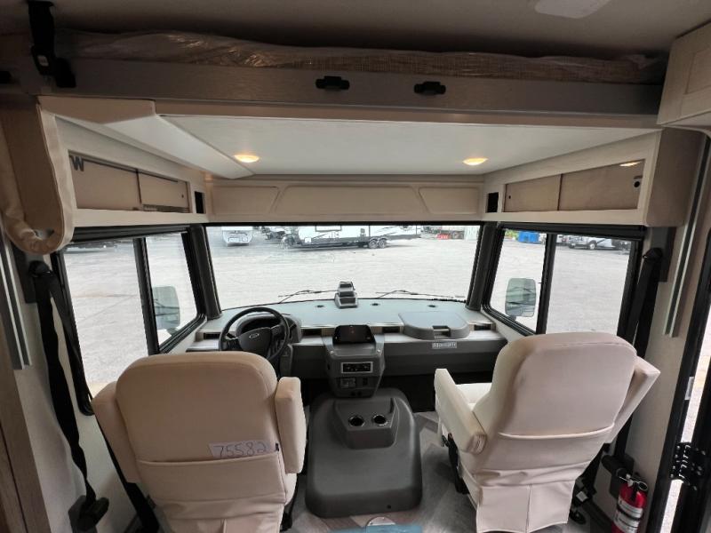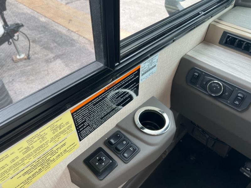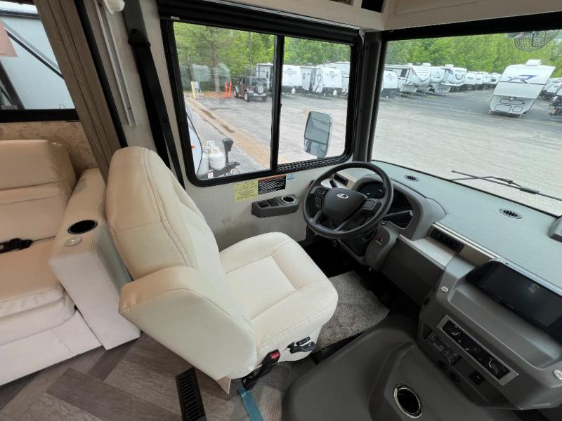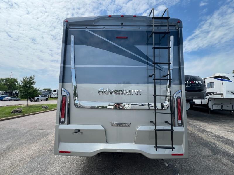The family-friendly Adventurer Class A gas motorhome by Winnebago is the ultimate family getaway for your trips near and far. The swivel captain's seats include fixed lumbar support and multi-adjustable slide/recline for a truly comfortable ride. You will appreciate the Sony 9" TS radio with Bluetooth, a rearview and sideview monitor system with a color touch screen, SiriusXM ready, and more to make the drive easier than ever. There is also a Driver Confidence Package with added safety features for an overall better driving experience. The powered blackout roller visor/shade on the front windshield will provide privacy when you stop for lunch, and the dash workstation will come in handy when you've got a deadline. Each model includes residential vinyl flooring throughout, a soft vinyl ceiling, a Corian galley countertop, and ceramic tile backsplash. The under-bed storage will provide a place for your luggage, and you'll find lighted storage compartments outside for all your larger gear. The optional SumoSprings suspension system and steering stabilizing system can be added to make the drive even smoother, and the optional WinnSleep Premium Serene mattress is another option you may want to add for all-around comfort!