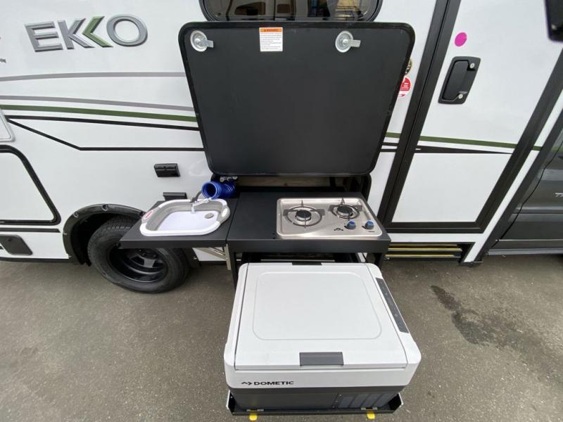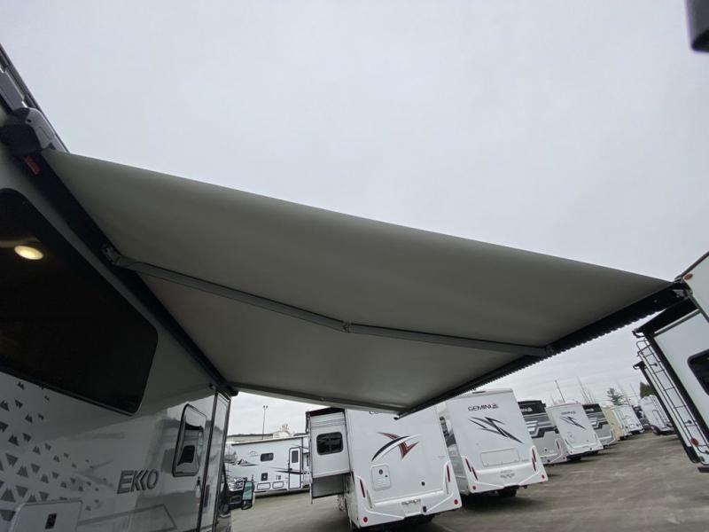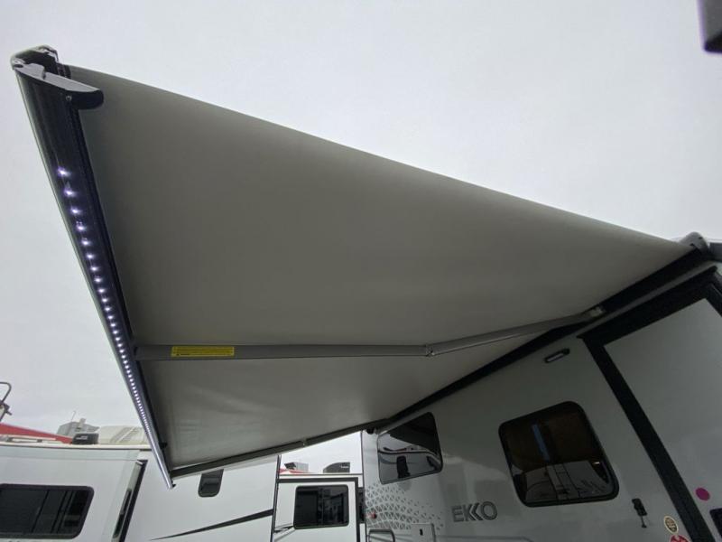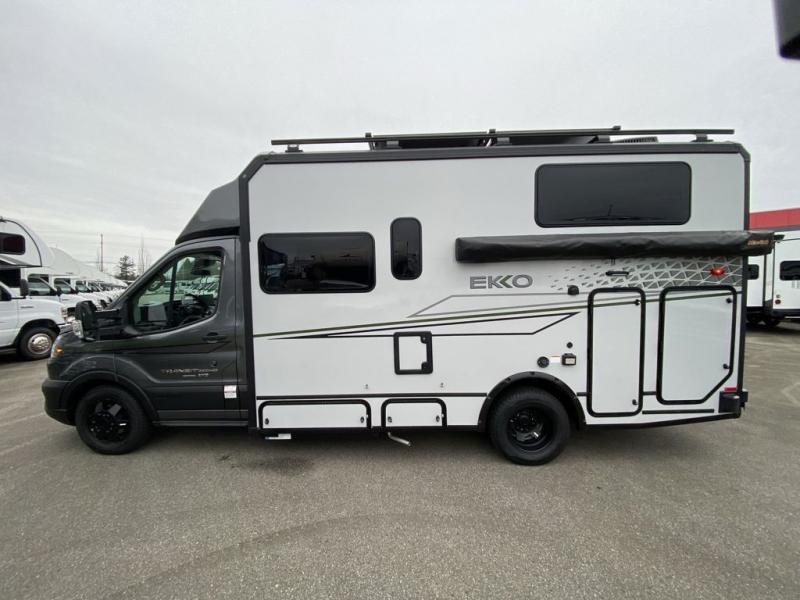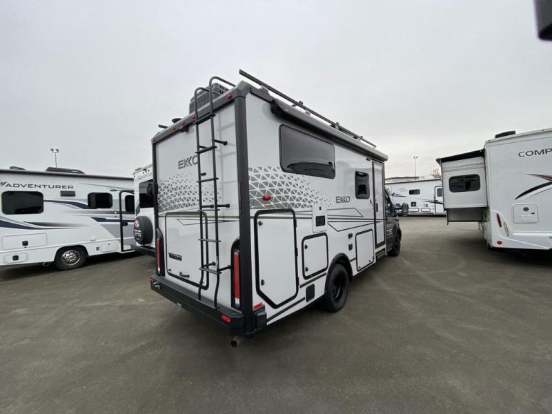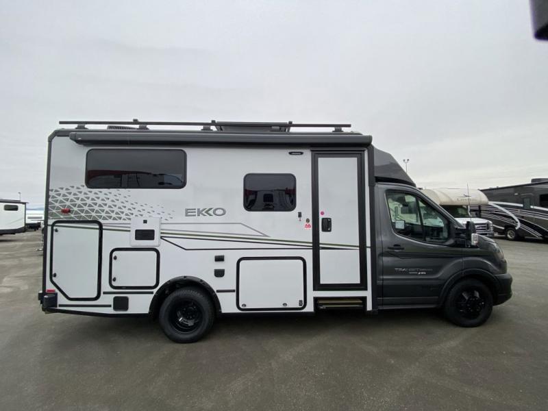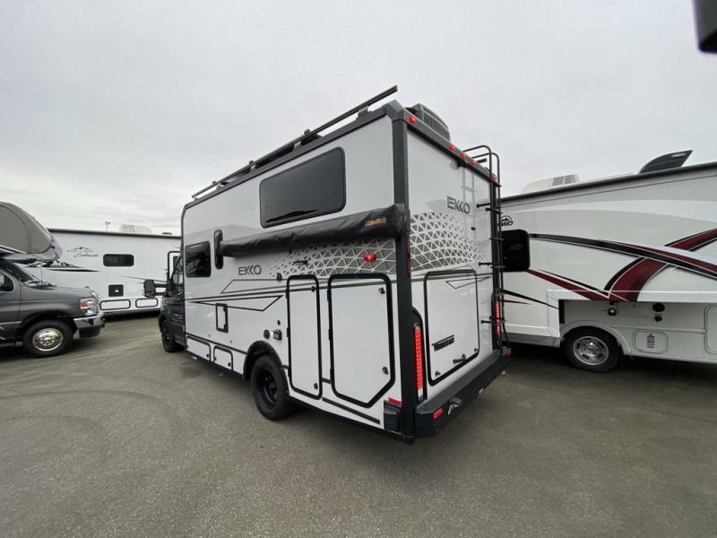 With the efficiency of a camper van, the capacity of a Class C coach, and the enhanced capability of AWD, the Winnebago Ekko Class C gas motorhome is ready to change the way you travel! You will be ready for all sorts of weather with the insulated water service center and heated holding tank compartment, and you will also be ready to camp just about anywhere with the three solar panels and a 2,800-watt gas generator. The heated gear garage has an L-track cargo tie-down system, and the RAM Tough-Track mount is an innovative way to mount a variety of different devices. The Ekko also has some very accommodating features that are included in its list of options, like the optional batwing awning, pop-top sleeping area with FROLI sleep system, luggage rack, and exterior kitchen.
