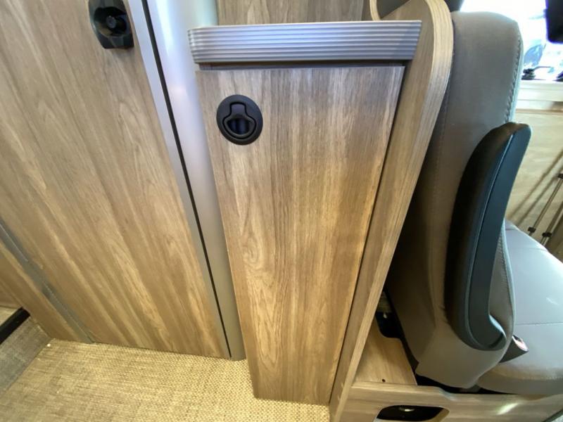 This Ekko all-wheel drive Class C gas motorhome is just unbelievably functional! Not only do you have plenty of storage space for all of your gear with the gear garage, under-bed storage, pantry, and 5.3-cubic foot refrigerator, but you also have a 24" x 30" wet bath with a pivoting lavatory wall so you can stay clean without having to stop at rest areas along the way. The cab area is excellently appointed with a radio/rearview monitor system, swivel/recline cab seats, and many driving safety features. Since the cab seats can swivel, you can use them as another place to sit down and eat at the fold-down table, and you can also use the swivel/adjustable work table for the passenger cab seat or as an extended countertop in the kitchen. Above the dining area is an access point to the optional pop-top sleeping area which would come in handy if you travel with multiple people.