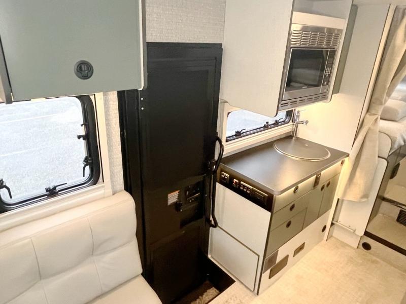 You will love the versatility found throughout this motorhome! Starting with the rear multifunctional lounge that can convert into four different modes. The flexible wet-dry bath has a pivoting lavatory wall, a 24" x 30" shower, an Oxygenics shower head to wash up, and even robe hooks to hang your towel afterwards. Keep your bellies full with delicious home cooked meals prepared in the versatile galley with the portable single burner induction range top, convection microwave oven, and 5.3 cu. ft. single door 12V refrigerator, plus a galley drawer/counter extension base. The heated gear garage has a L-track cargo tie down system with removable floor liner, 110V/12V charging ports and LED lighting to see clearly day or night!