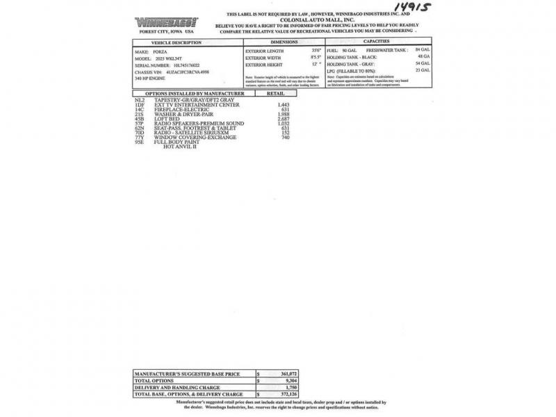 New 2025 Winnebago Forza 34T Motor Home Class A - Diesel