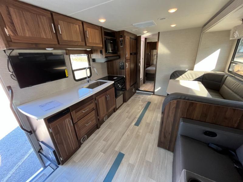 Choose your adventure with one of these Winnebago Minnie Winnie Class C gas motorhomes! The 7.3L V8 premium engine and Ford E450 chassis makes light work of long hills. Their superior craftsmanship that was designed and built for you is shown through the Smart Driver Assist technology that includes adaptive cruise control, lane departure warning, forward collision warning, and more. With flexible seating/sleeping options and a full galley with Corian solid surface countertops, everyone will stay well rested and fed. You can store all of your traveling necessities between the overhead cabinets throughout the inside and the exterior lighted large trunk storage compartment for your outdoor gear. Come find the model perfect for you today!