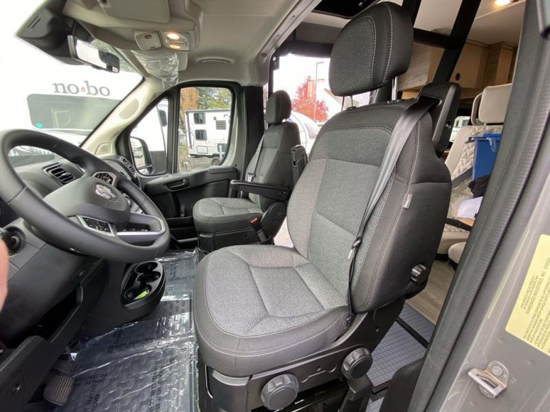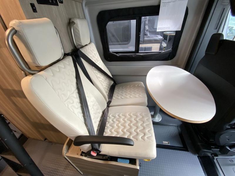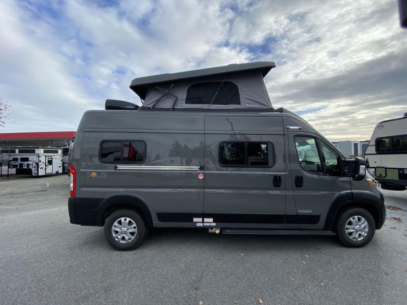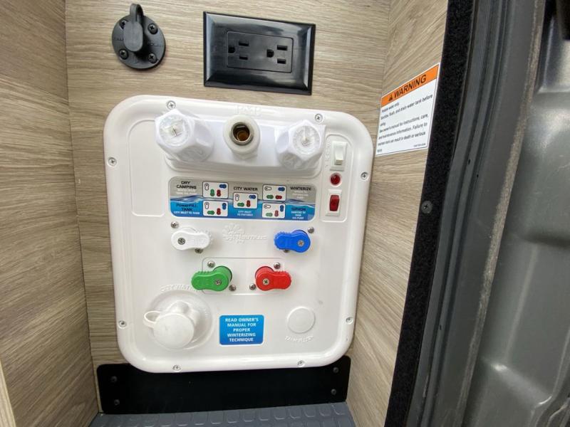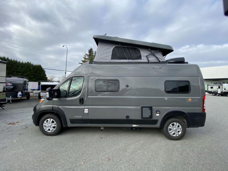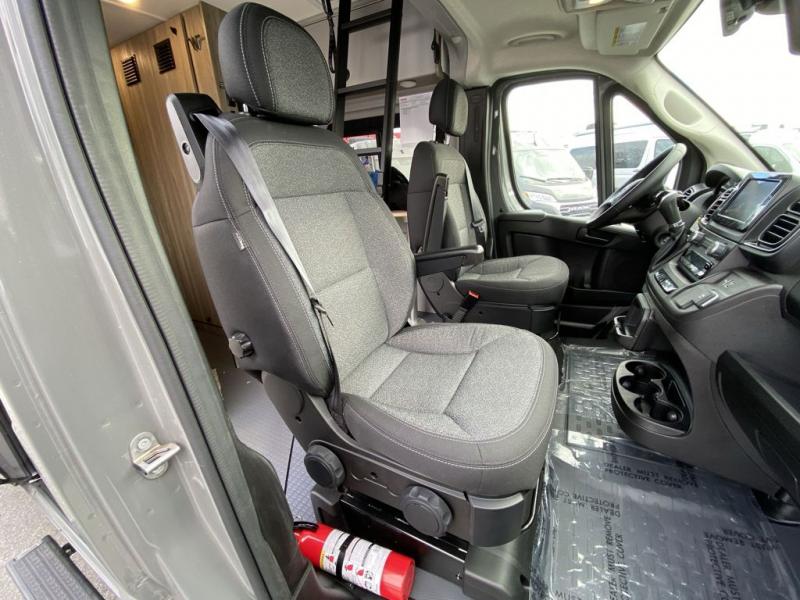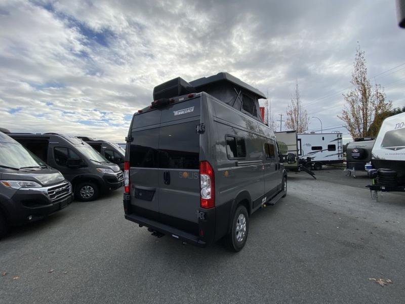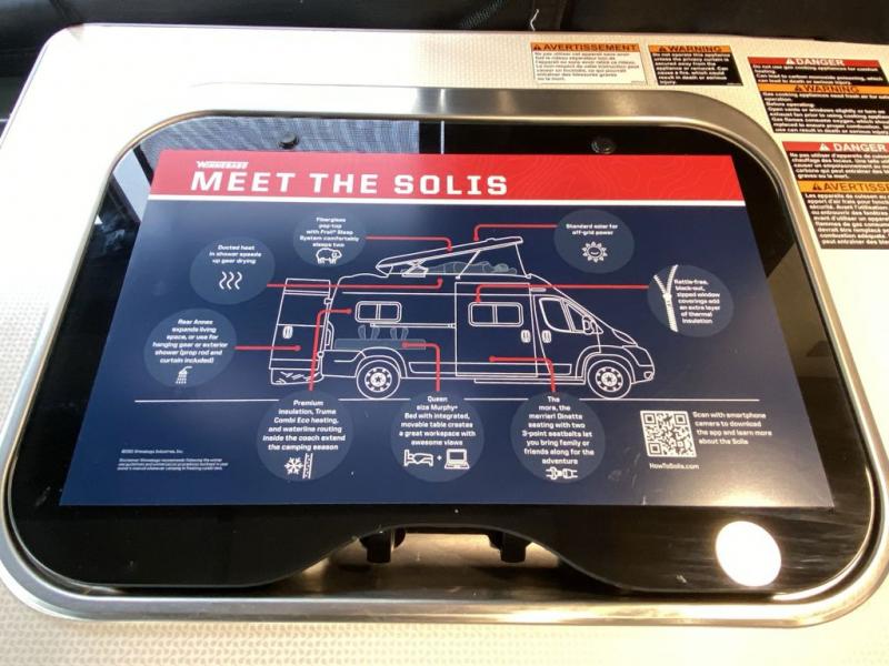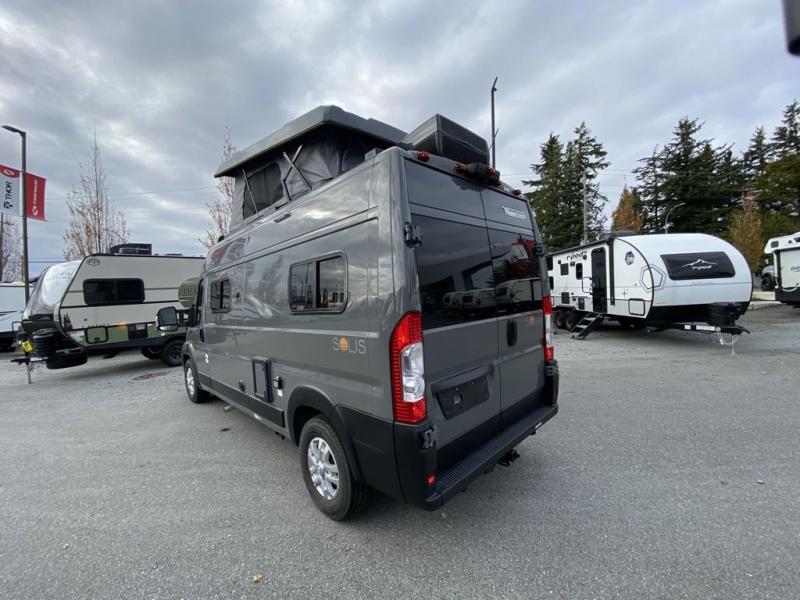 Each Solis Class B gas motorhome by Winnebago sits upon a fuel-efficient Ram ProMaster chassis with a 3.6L V6 engine to power your adventures. You will love the cab conveniences that make each trip enjoyable, like the radio/review monitor system touchscreen and the crosswind assist to keep you steady on the road. Some of the hassle-free amenities you will appreciate are the exterior wash station, the Eco-Hot water system, and the water center control panel located inside the right rear door. Head indoors to find heavy-duty vinyl flooring throughout, a laminate countertop and a stainless steel sink in the galley, plus tinted coach windows for added privacy. The Solis also features off-grid capabilities with its two deep-cycle Group 31 batteries and 220-watt flexible surface solar panel with a controller. Adventures awaits in the Solis Class B gas motorhome!