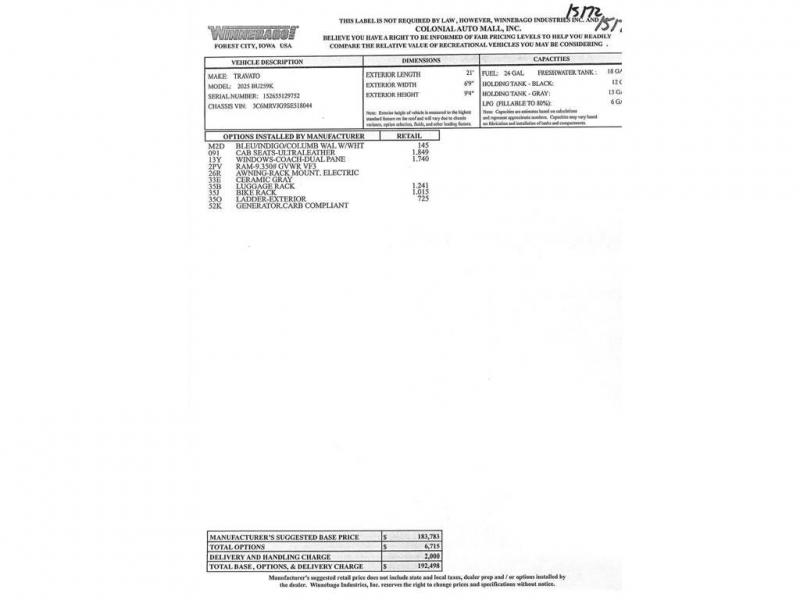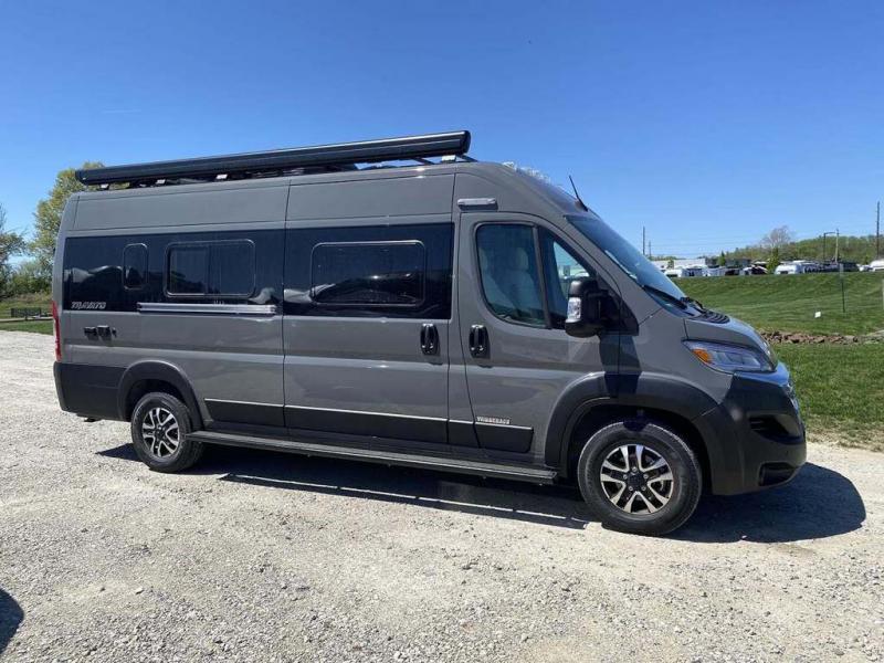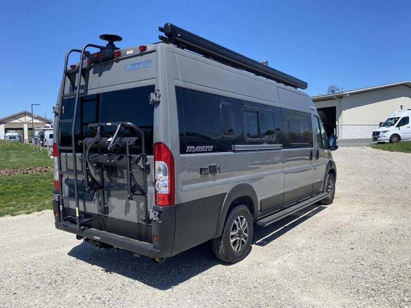 Each one of these Winnebago Travato Class B gas motorhomes are perfect for adventure seekers of all types! The rear annex extends your living space and gives you the versatility of hanging wet gear, using it as an outdoor shower, or an impromptu awning. They are powered by a Ram ProMaster 3.6L V6 gas engine with 280 HP and a 9-speed automatic transmission, and include a radio/rearview monitor system with navigation, USB ports, and more to make the drive easier than ever. The superior craftsmanship consists of a Truma Combi Eco Plus heating system that can run off of propane or electricity, aluminum running boards with logoed tread, ground-effect lighting and pet loop attachment so even your furry friends can come along. You will also find RAM Tough-Track Mounts throughout for your gear, tinted coach windows and blackout cassette shades for added privacy, plus a 24" HDTV and Bluetooth soundbar to ensure you'll never go bored!