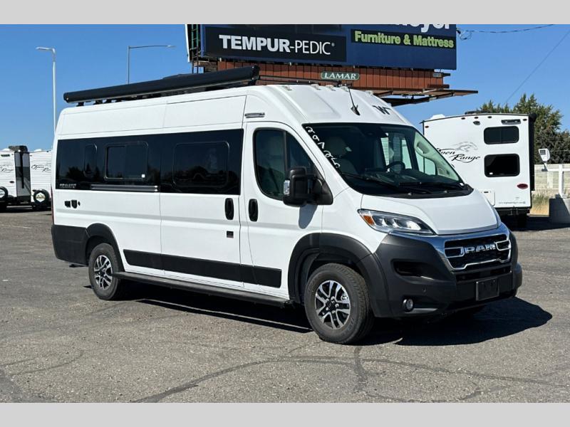 Each one of these Winnebago Travato Class B gas motorhomes are perfect for adventure seekers of all types! The rear annex extends your living space and gives you the versatility of hanging wet gear, using it as an outdoor shower, or an impromptu awning. They are powered by a Ram ProMaster 3.6L V6 gas engine with 280 HP and a 9-speed automatic transmission, and include a radio/rearview monitor system with navigation, USB ports, and more to make the drive easier than ever. The superior craftsmanship consists of a Truma Combi Eco Plus heating system that can run off of propane or electricity, aluminum running boards with logoed tread, ground-effect lighting and pet loop attachment so even your furry friends can come along. You will also find RAM Tough-Track Mounts throughout for your gear, tinted coach windows and blackout cassette shades for added privacy, plus a 24" HDTV and Bluetooth soundbar to ensure you'll never go bored!