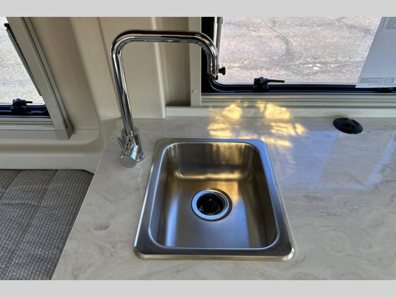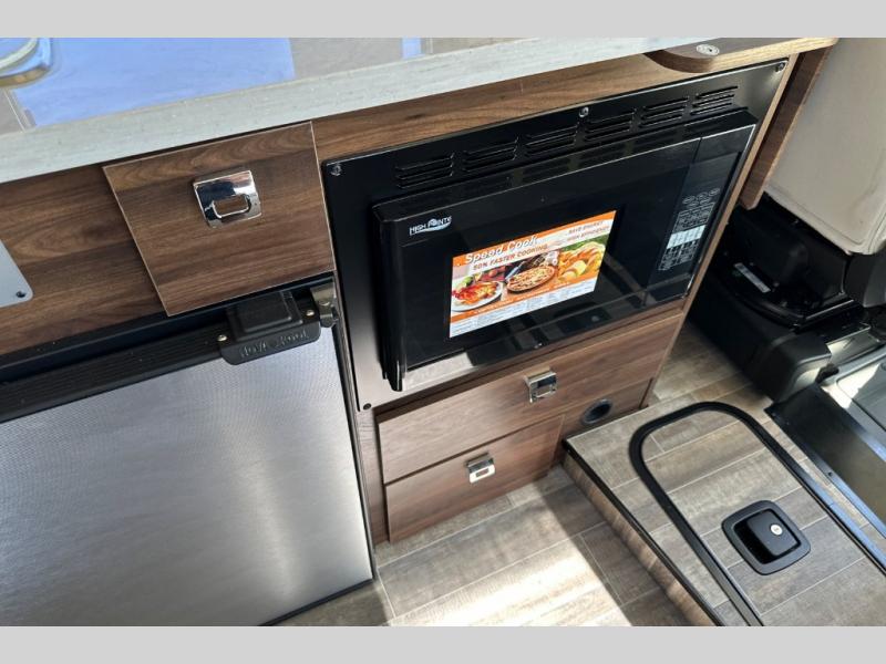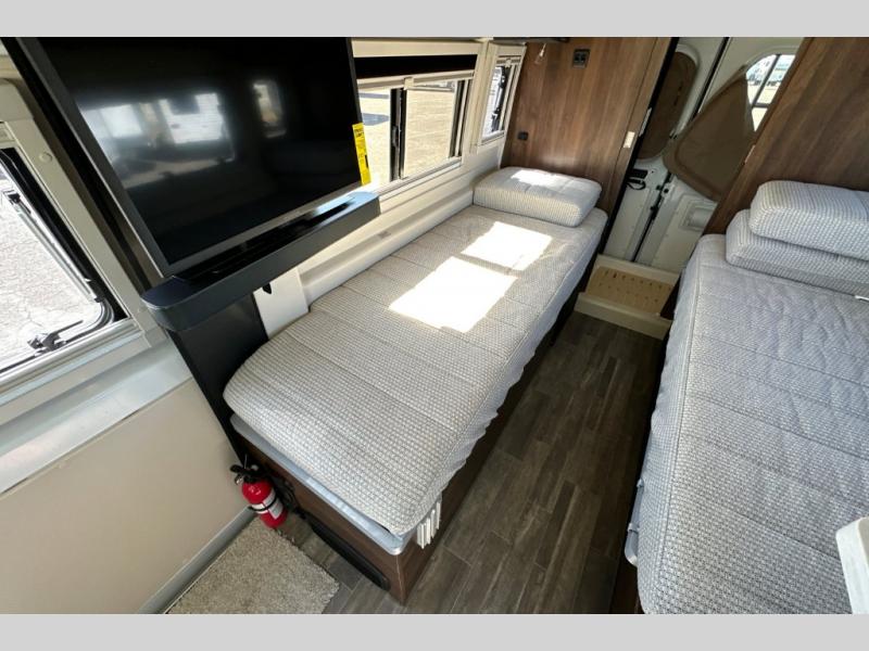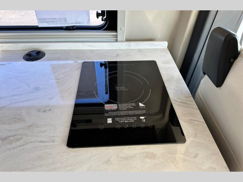 Don't pass up your chance to travel in true luxury with this motorhome! After a long day of traveling, you can rest up on one of the two twin beds which can be converted into a 74" x 76" bed with the flex bed system. Freshen up in the rear 25" x 43" wet bath with a fold down lavatory sink and a wardrobe to store your clothes and towels, plus sliding doors for privacy. You don't have to eat fast food while on the road either thanks to the single burner induction cooktop and single door 4.3 cu. ft. compressor-driven refrigerator/freezer, plus you have a flip-up countertop extension to make your meal prepping easier. The adjustable/removable table and mount makes it easy to eat your meals in different areas of the motorhome too. This model also comes with the Pure3 energy management system which has a 3-module lithium-ion energy pack, 3,200 watt inverter, a Bluetooth control module, an energy pack heating system, and a second dedicated alternator powered by the chassis engine!