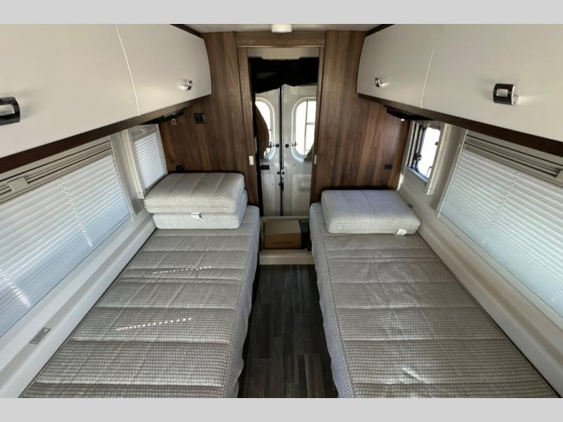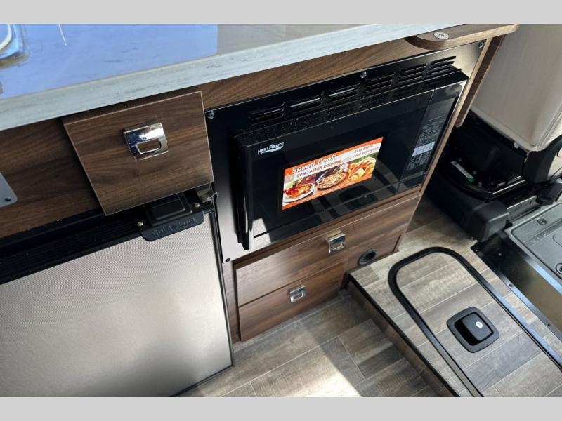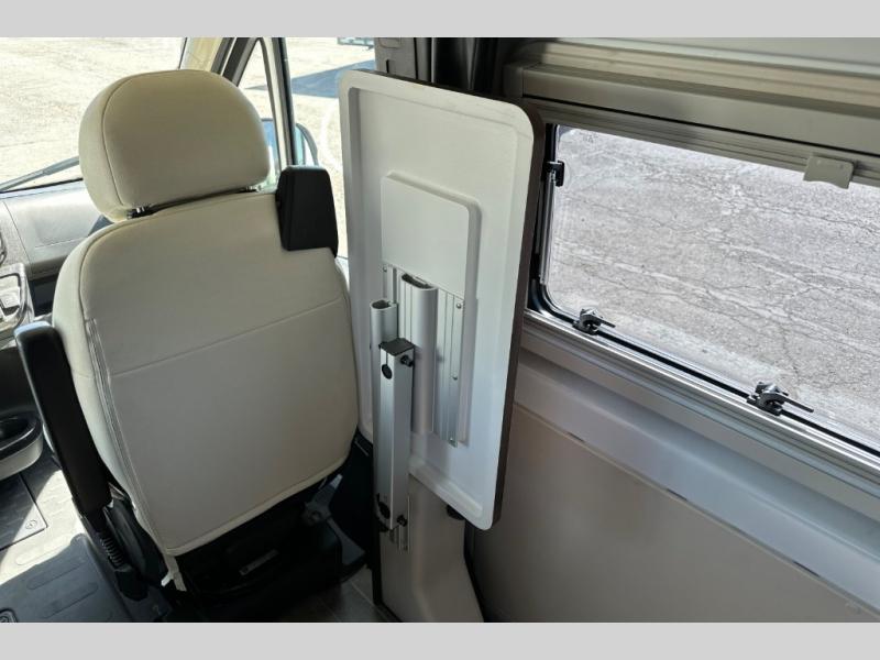 Don't pass up your chance to travel in true luxury with this motorhome! After a long day of traveling, you can rest up on one of the two twin beds which can be converted into a 74" x 76" bed with the flex bed system. Freshen up in the rear 25" x 43" wet bath with a fold down lavatory sink and a wardrobe to store your clothes and towels, plus sliding doors for privacy. You don't have to eat fast food while on the road either thanks to the single burner induction cooktop and single door 4.3 cu. ft. compressor-driven refrigerator/freezer, plus you have a flip-up countertop extension to make your meal prepping easier. The adjustable/removable table and mount makes it easy to eat your meals in different areas of the motorhome too. This model also comes with the Pure3 energy management system which has a 3-module lithium-ion energy pack, 3,200 watt inverter, a Bluetooth control module, an energy pack heating system, and a second dedicated alternator powered by the chassis engine!