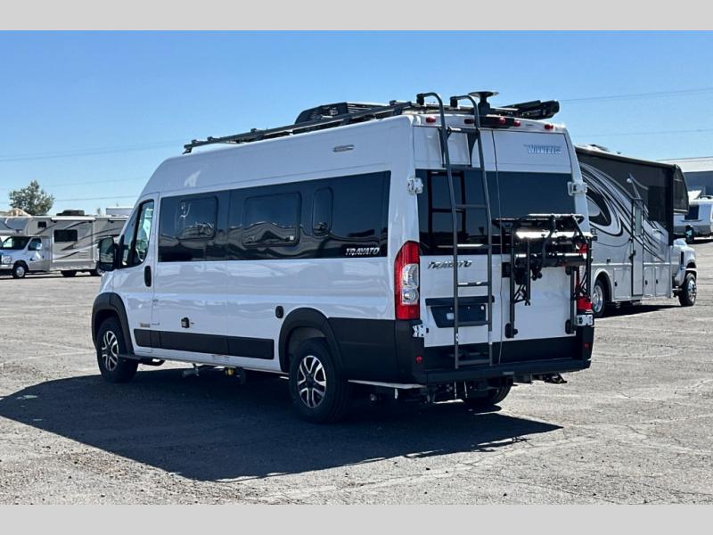 Each one of these Winnebago Travato Class B gas motorhomes are perfect for adventure seekers of all types! The rear annex extends your living space and gives you the versatility of hanging wet gear, using it as an outdoor shower, or an impromptu awning. They are powered by a Ram ProMaster 3.6L V6 gas engine with 280 HP and a 9-speed automatic transmission, and include a radio/rearview monitor system with navigation, USB ports, and more to make the drive easier than ever. The superior craftsmanship consists of a Truma Combi Eco Plus heating system that can run off of propane or electricity, aluminum running boards with logoed tread, ground-effect lighting and pet loop attachment so even your furry friends can come along. You will also find RAM Tough-Track Mounts throughout for your gear, tinted coach windows and blackout cassette shades for added privacy, plus a 24" HDTV and Bluetooth soundbar to ensure you'll never go bored!