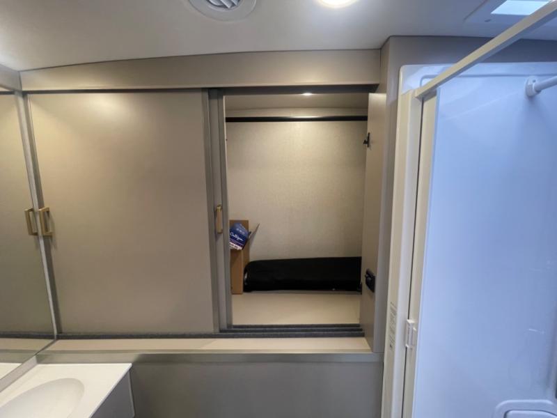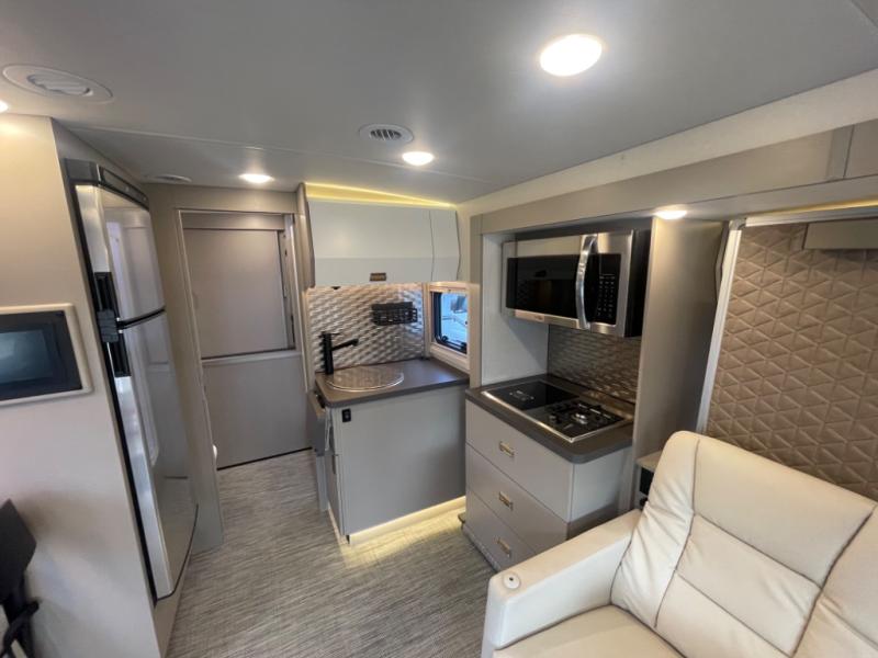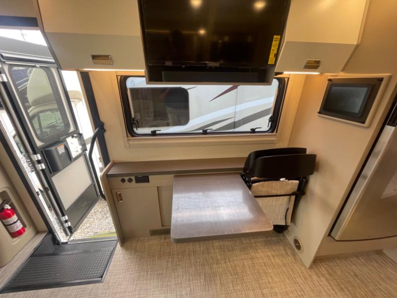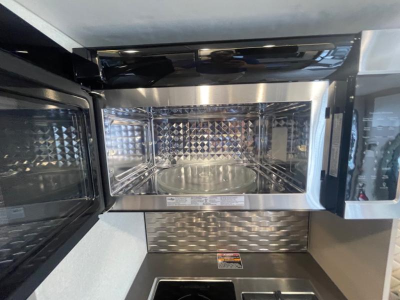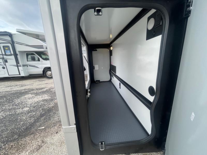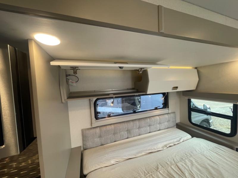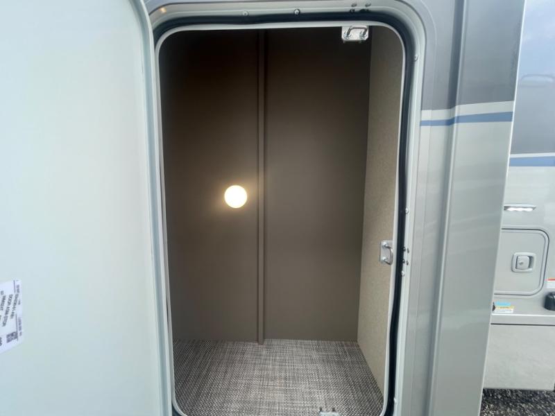 The perfect couples coach or for a family of three or four! You will be able to easily set up the queen Murphy+ bed when it's time for bedtime while the kids or your guests sleep on the 49" x 75" cabover bunk. You can also choose the optional low profile front cap with storage if you do not need the added sleeping space. An optional 3800W RVMP Flex Power generator is also available with this model. Everyone can get cleaned up in the full bathroom that has a space-saving sliding door and large wardrobe along the very rear that features a gear garage below. Create yummy meals and snacks using the kitchen appliances and the flip-up counter, then dine at the fold-down table with chairs, or eat seated on the theater seating with lap tables nearby on either side.