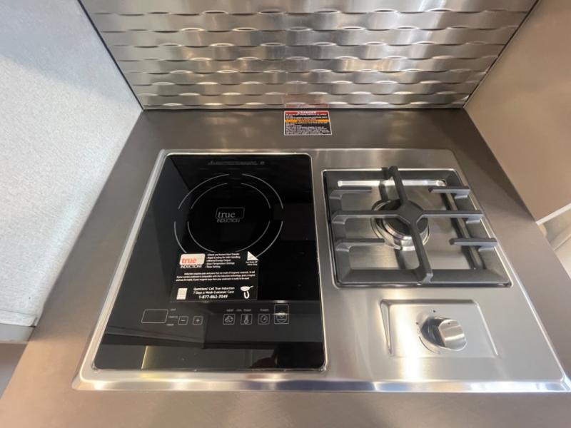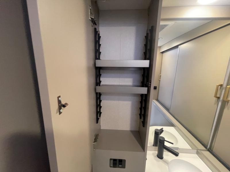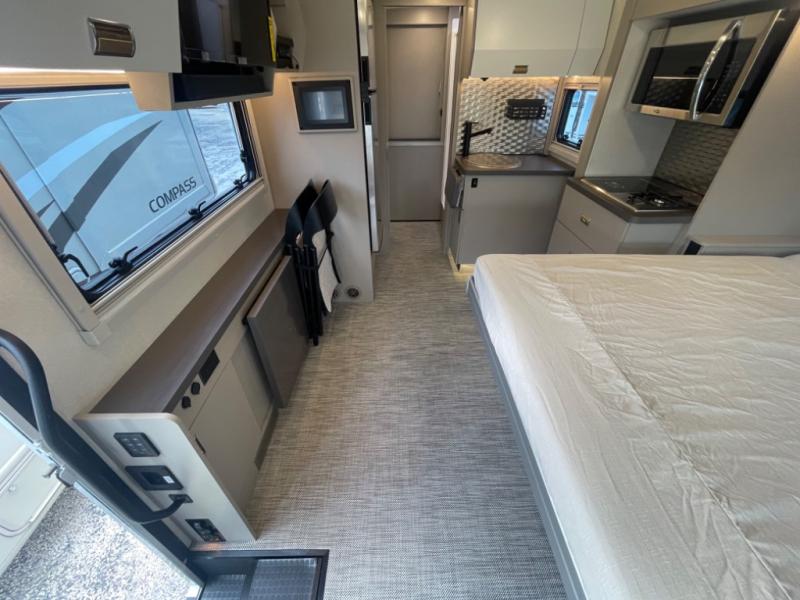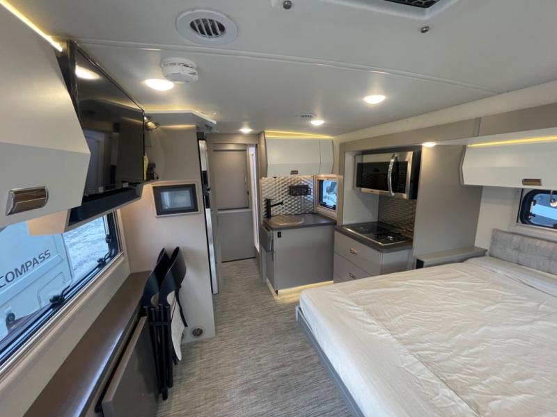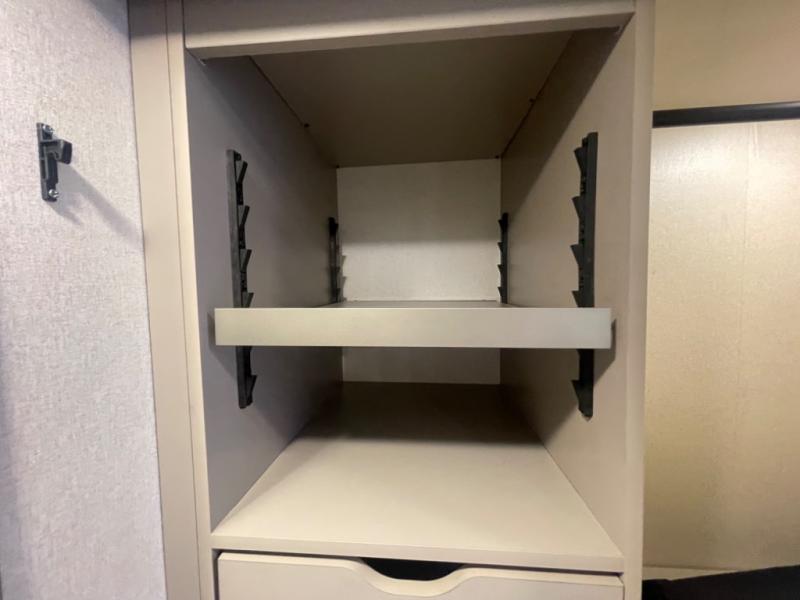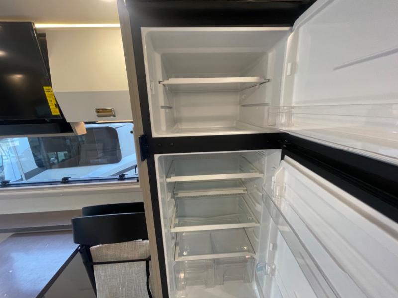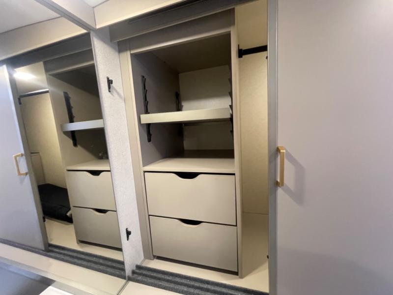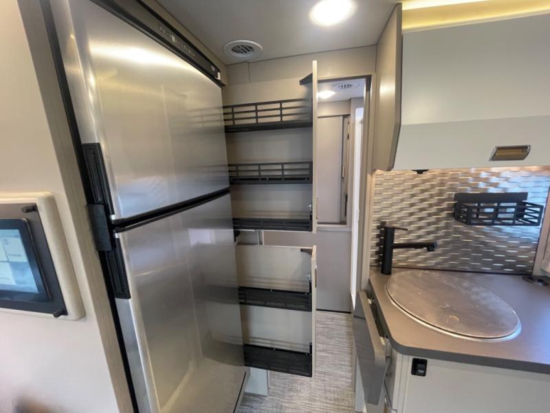 The perfect couples coach or for a family of three or four! You will be able to easily set up the queen Murphy+ bed when it's time for bedtime while the kids or your guests sleep on the 49" x 75" cabover bunk. You can also choose the optional low profile front cap with storage if you do not need the added sleeping space. An optional 3800W RVMP Flex Power generator is also available with this model. Everyone can get cleaned up in the full bathroom that has a space-saving sliding door and large wardrobe along the very rear that features a gear garage below. Create yummy meals and snacks using the kitchen appliances and the flip-up counter, then dine at the fold-down table with chairs, or eat seated on the theater seating with lap tables nearby on either side.