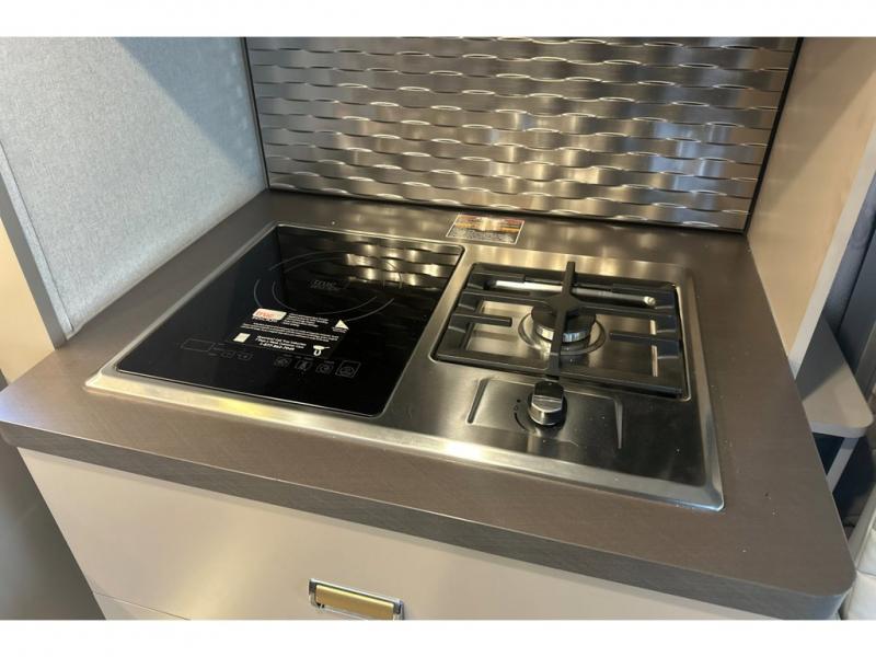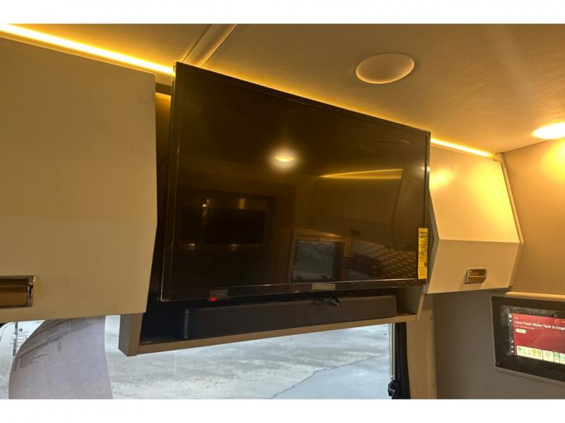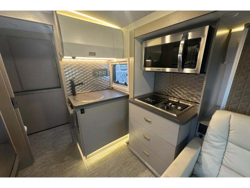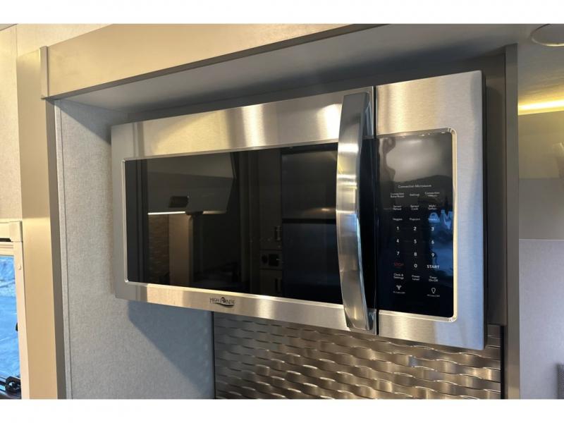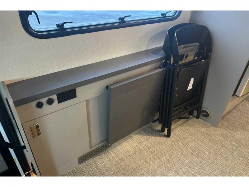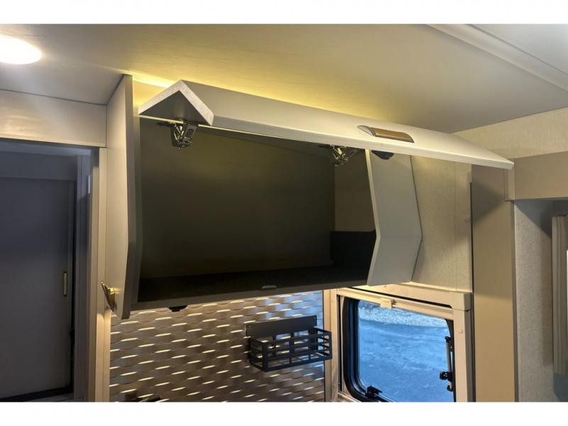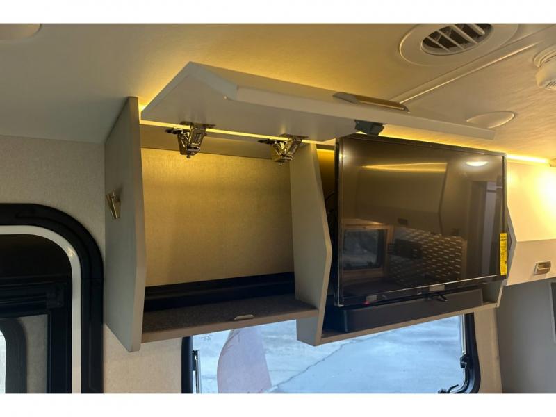 The perfect couples coach or for a family of three or four! You will be able to easily set up the queen Murphy+ bed when it's time for bedtime while the kids or your guests sleep on the 49" x 75" cabover bunk. You can also choose the optional low profile front cap with storage if you do not need the added sleeping space. An optional 3800W RVMP Flex Power generator is also available with this model. Everyone can get cleaned up in the full bathroom that has a space-saving sliding door and large wardrobe along the very rear that features a gear garage below. Create yummy meals and snacks using the kitchen appliances and the flip-up counter, then dine at the fold-down table with chairs, or eat seated on the theater seating with lap tables nearby on either side.