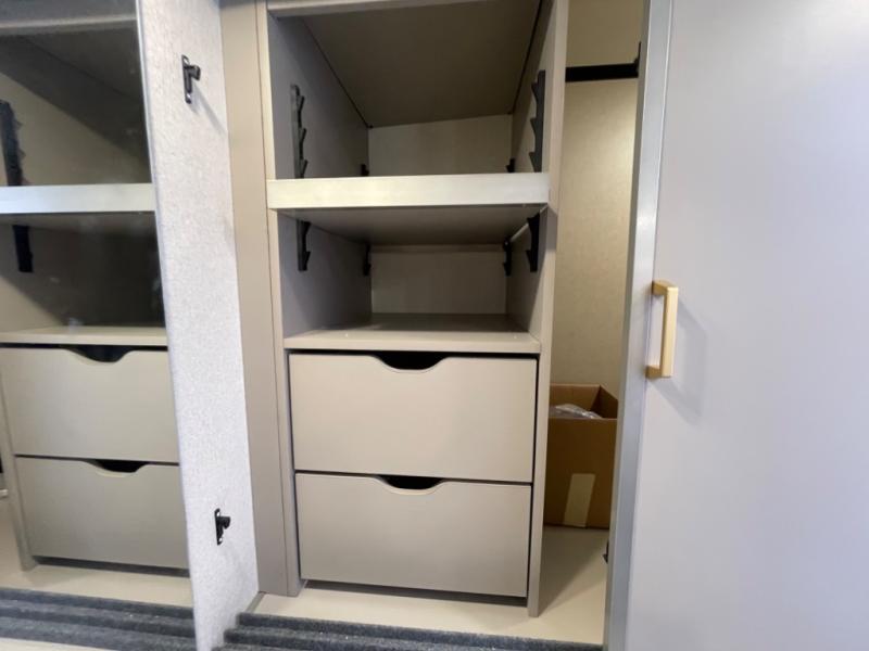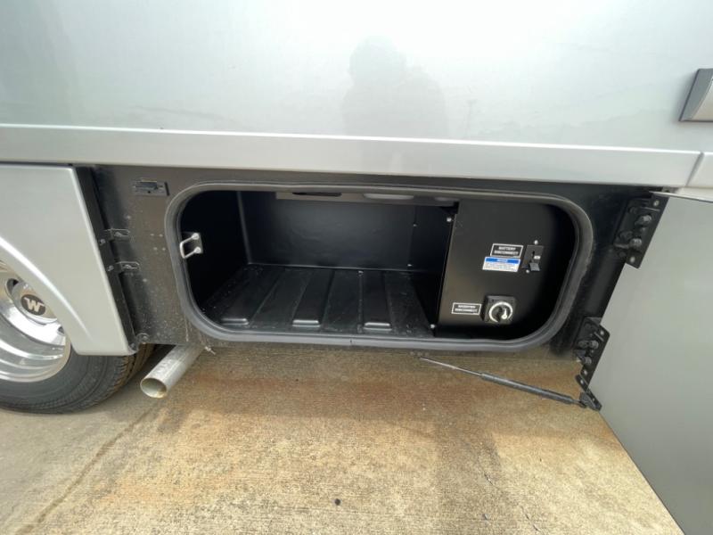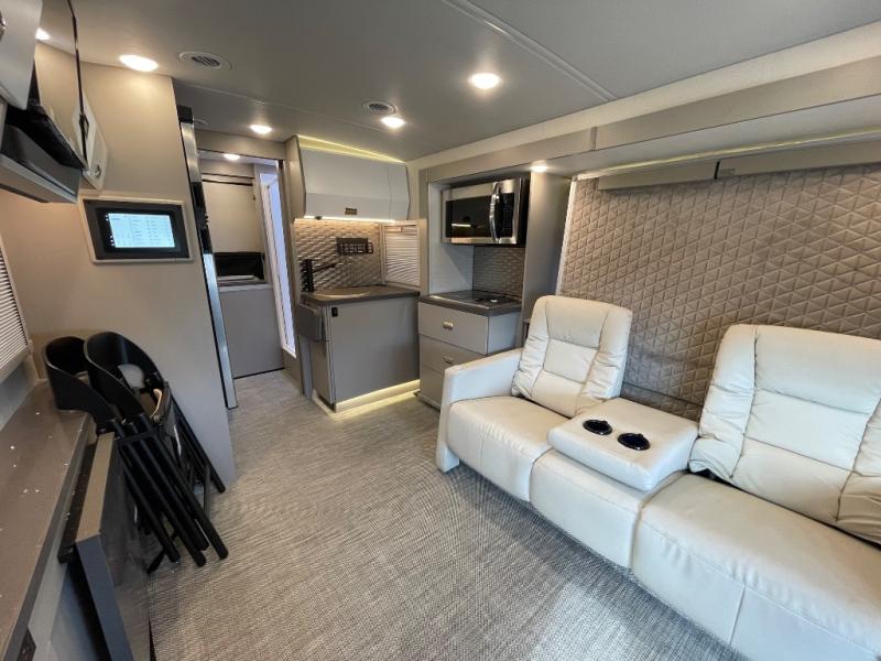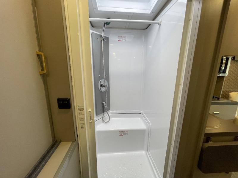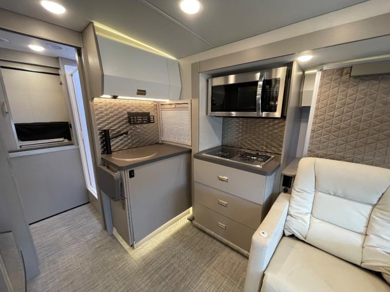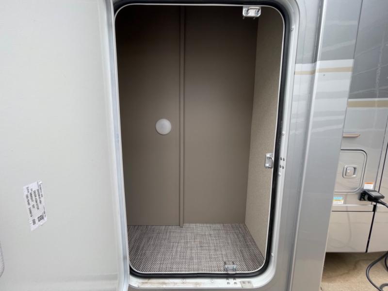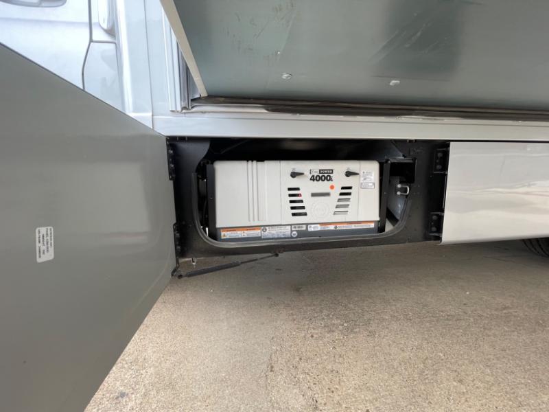 The perfect couples coach or for a family of three or four! You will be able to easily set up the queen Murphy+ bed when it's time for bedtime while the kids or your guests sleep on the 49" x 75" cabover bunk. You can also choose the optional low profile front cap with storage if you do not need the added sleeping space. An optional 3800W RVMP Flex Power generator is also available with this model. Everyone can get cleaned up in the full bathroom that has a space-saving sliding door and large wardrobe along the very rear that features a gear garage below. Create yummy meals and snacks using the kitchen appliances and the flip-up counter, then dine at the fold-down table with chairs, or eat seated on the theater seating with lap tables nearby on either side.