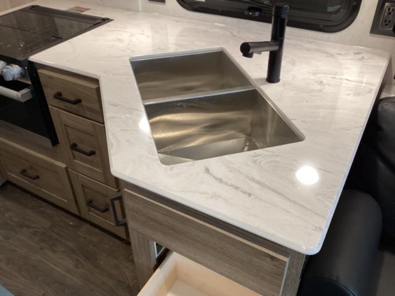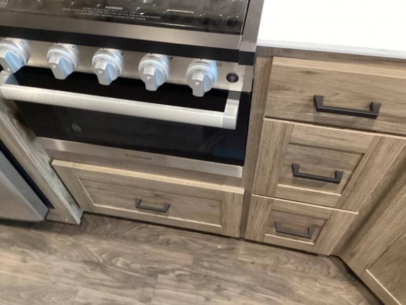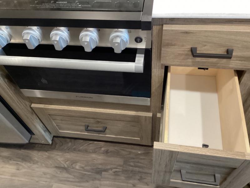 Thoughtful layout, plenty of storage, and quality appliances make cooking on the road easy and enjoyable.